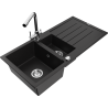 Mexen Andres granit izlietne ar 1,5 nodalījumu, ar drenāžu un virtuves jaucējkrānu Duero, melna/sudraba - 6515-73-671600-00