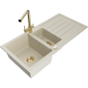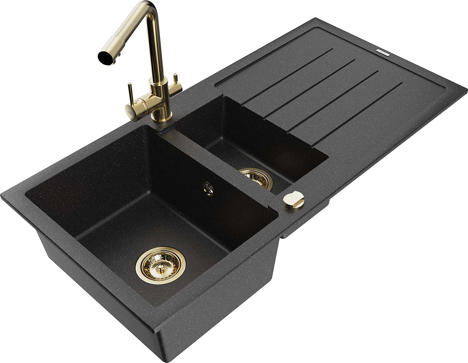 Mexen Andres granitā izlietne ar 1,5 nodalījumiem un notekpaplāti un virtuves jaucējkrānu Duero, melna/sudraba