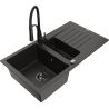 Mexen Matias granitā izlietne ar 1,5 kamerām, notecētāju un virtuves jaucējkrānu Aster, pelēks - 6502-71-73450-70-B