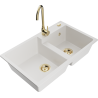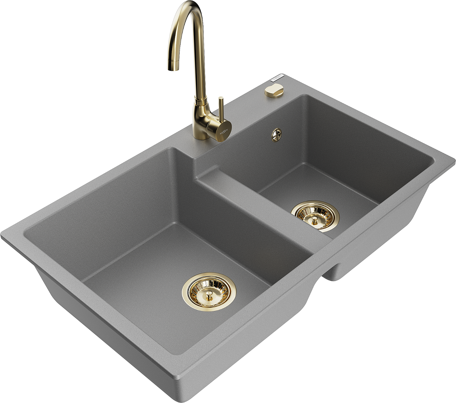Mexen Tomas granitveida izlietne ar divām bļodām un virtuves krānu Telma, pelēka - 6516-71-670200-50