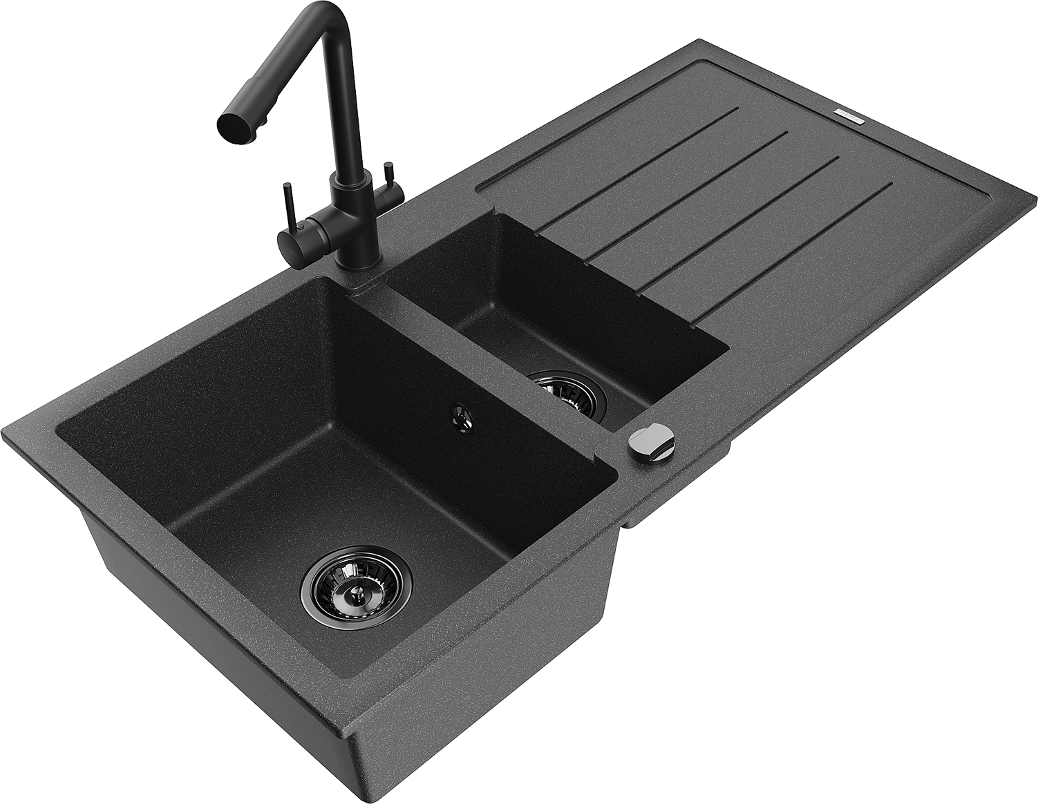 Mexen Andres granitizlietne izlietne ar 1,5 nodalījumu un jaucējkrānu Duero, melna plankumaina - 6515-76-671600-70-B