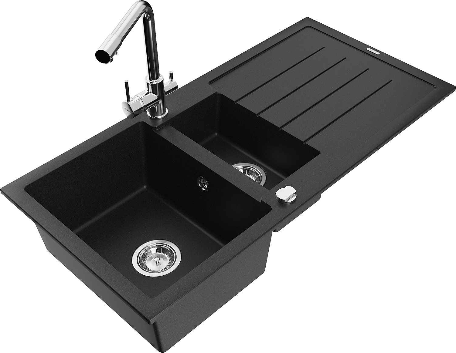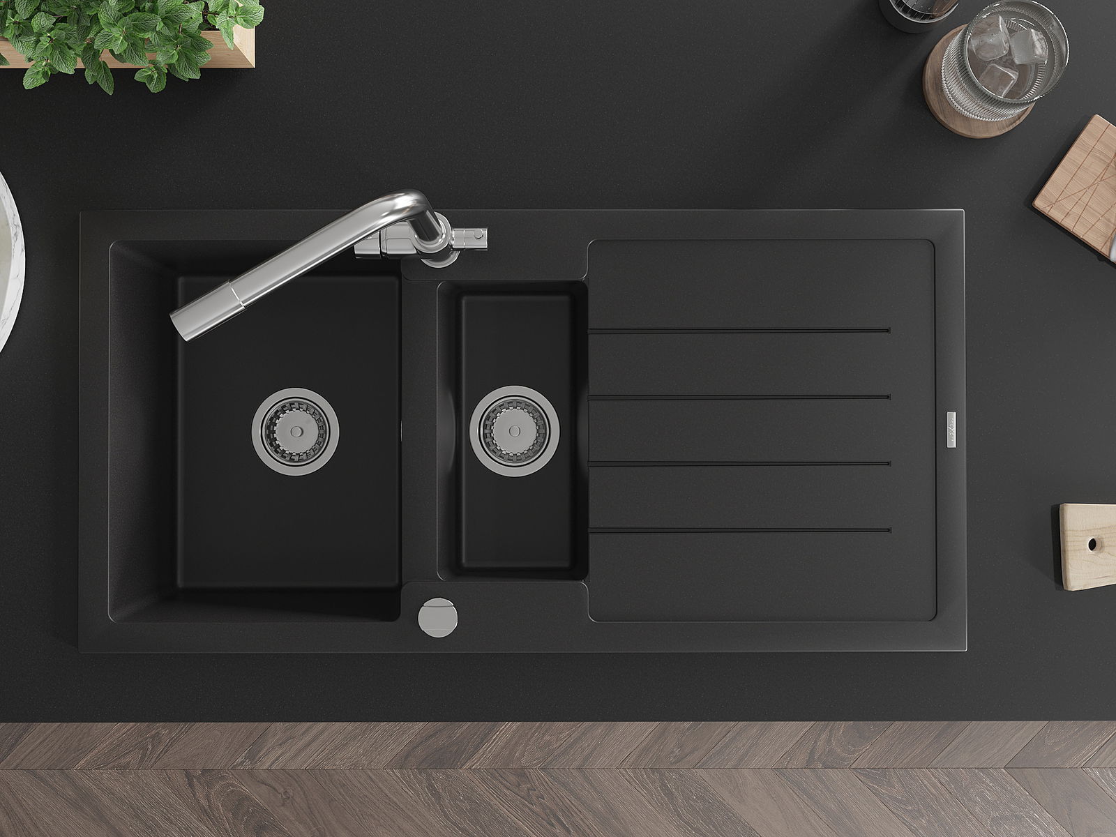Mexen Andres granitizlietne izlietne 1,5 nodalījumā ar notekas un virtuves jaucējkrānu Duero, melna - 6515-77-671600-00