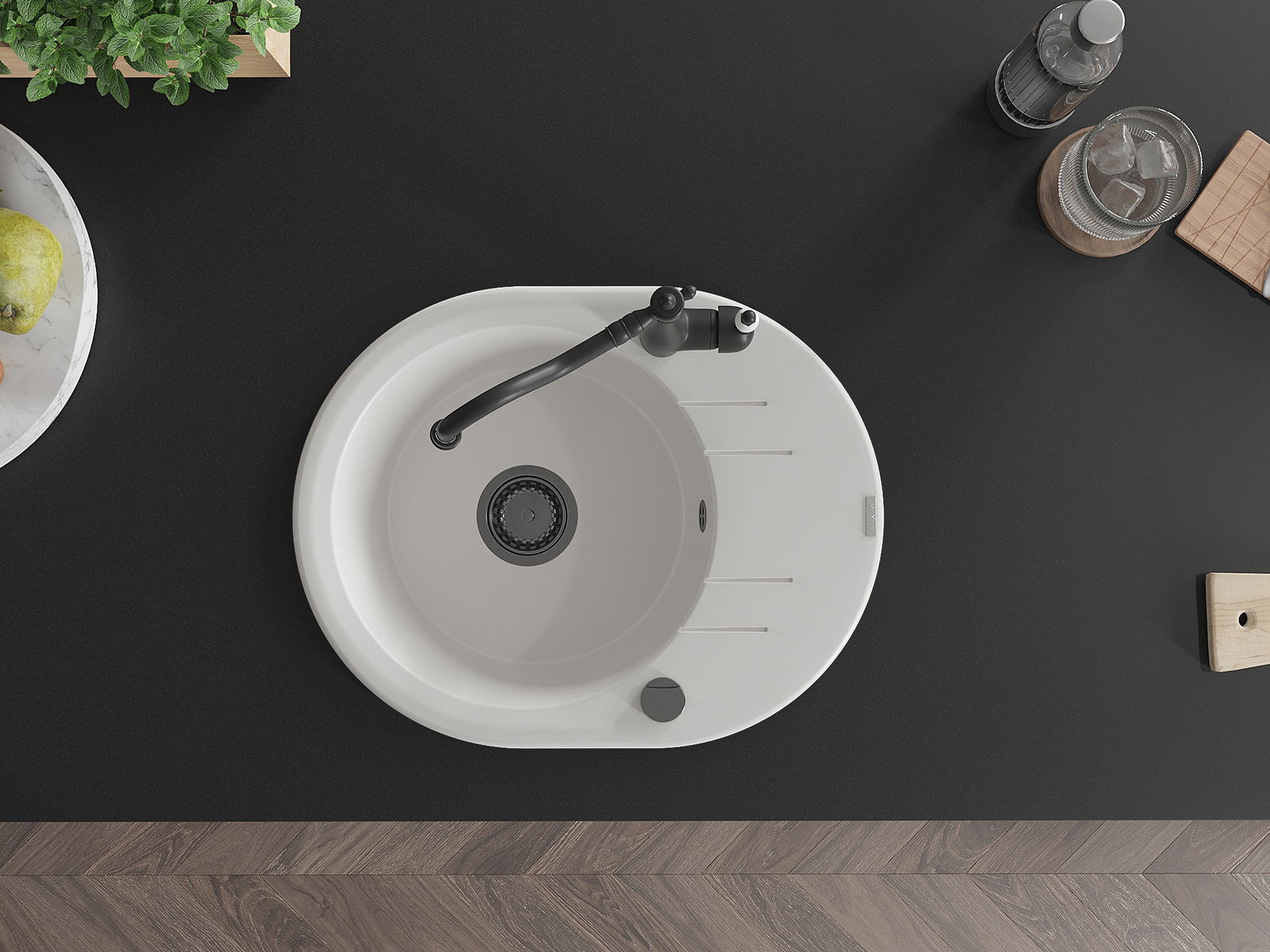 Mexen Kevin granitizlietne ar vienu nodalījumu, ar noteces virsmu un virtuves jaucējkrānu Carla, balta - 6517-20-670700-70
