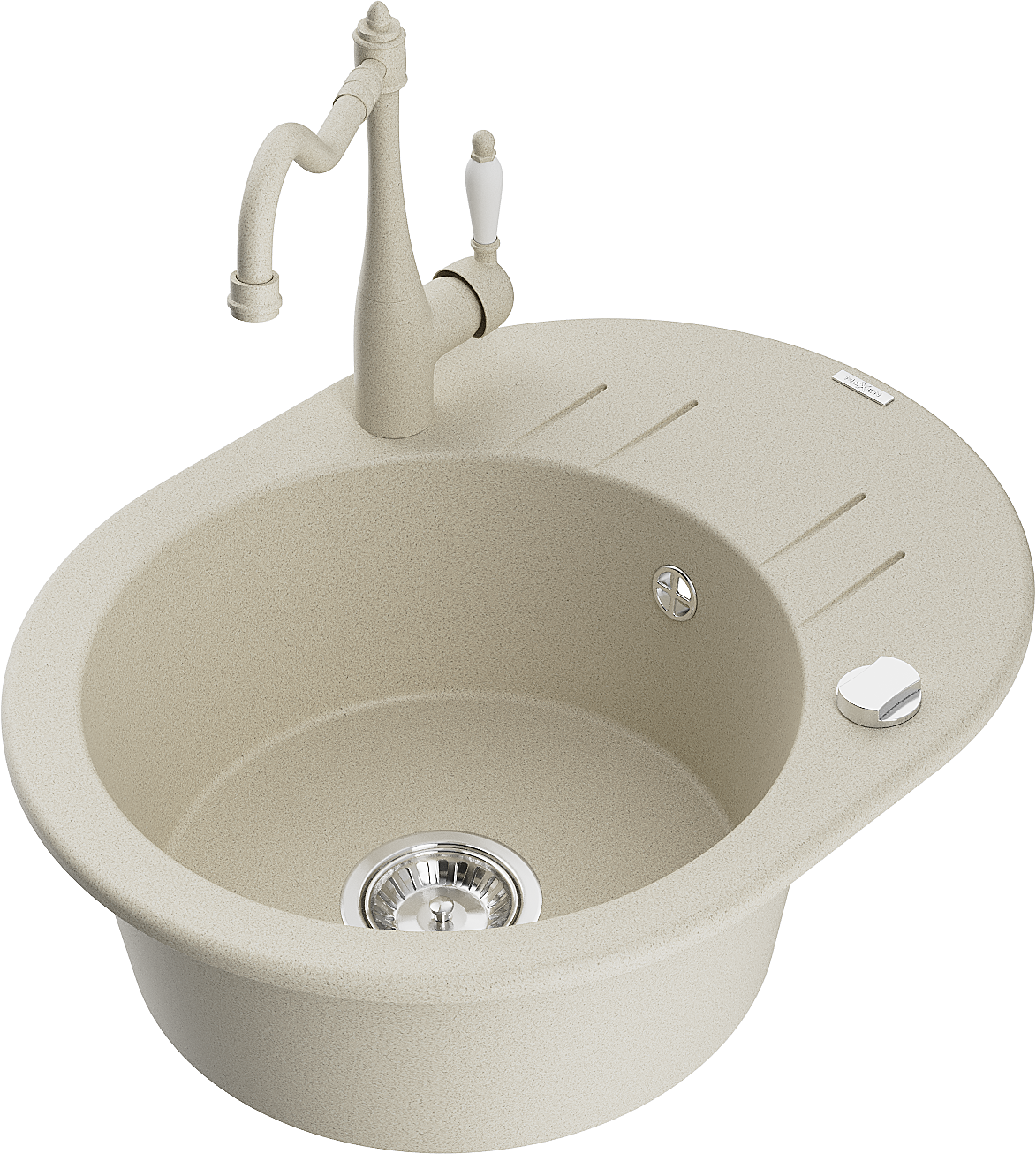 Mexen Kevin granit izlietne ar vienu nodalījumu un noteces vietu un virtuves jaucējkrānu Carla, bēša - 6517-69-670700-69