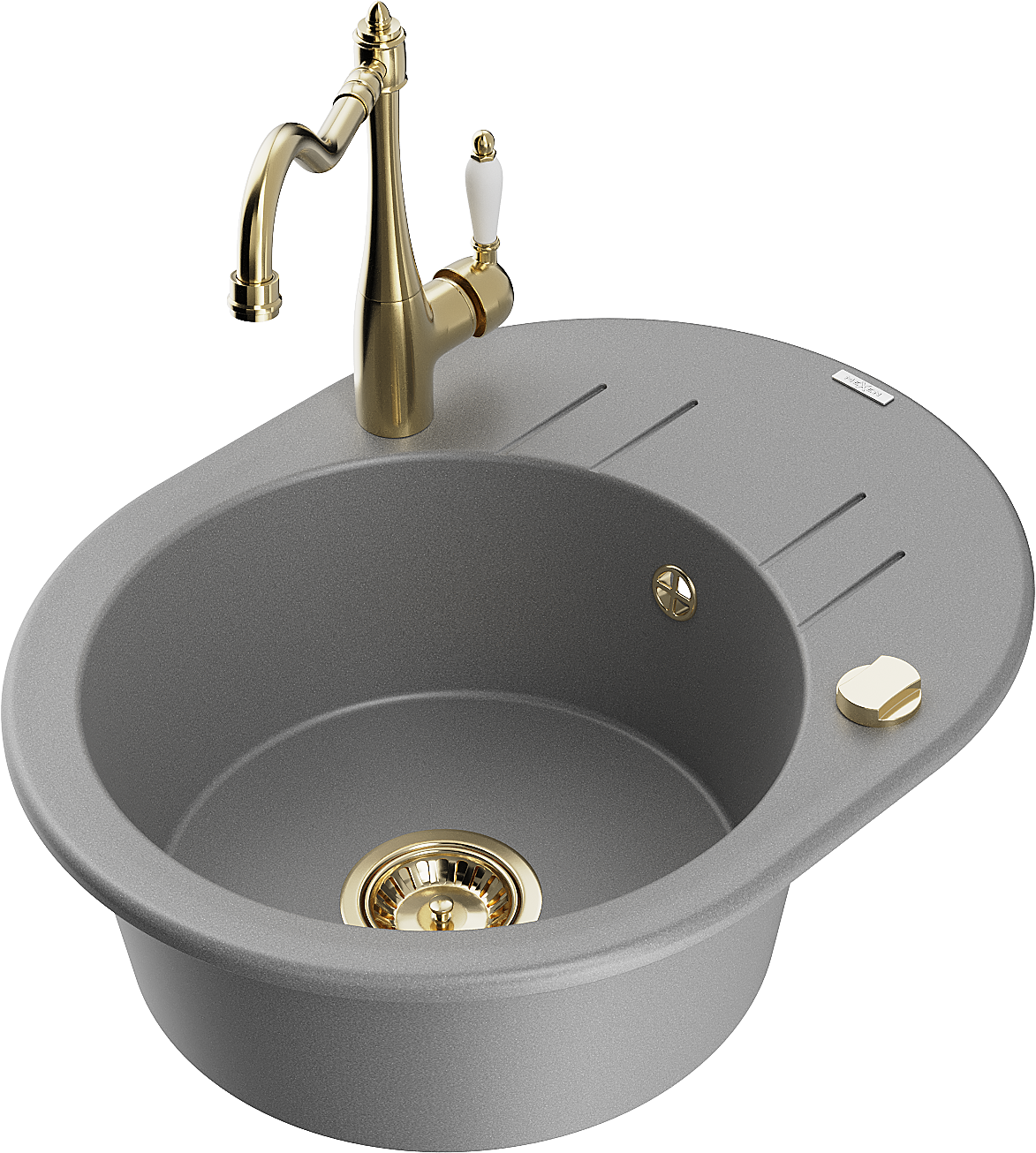 Mexen Kevin vienasistabas granīta izlietne ar noteku un virtuves jaucējkrānu Carla, pelēks - 6517-71-670700-50