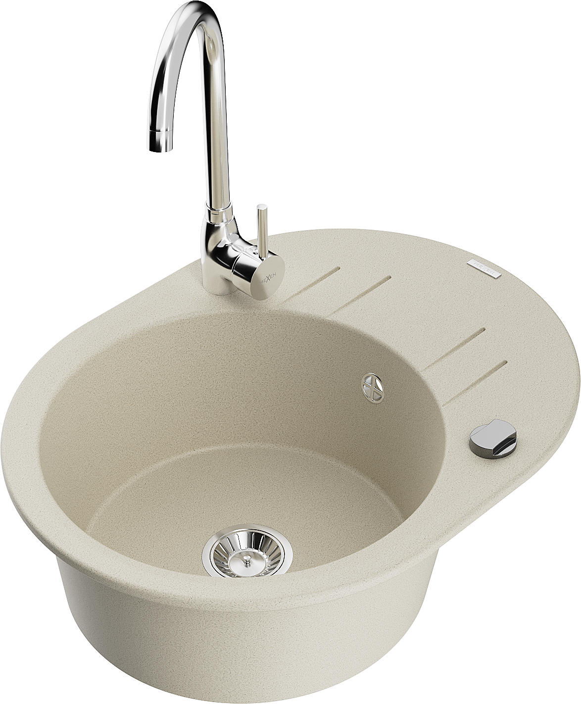 Mexen Kevin granitais izlietne ar 1 nodalījumu un noteces zonu un virtuves jaucējkrānu Telma, bēšs - 6517-69-670200-00