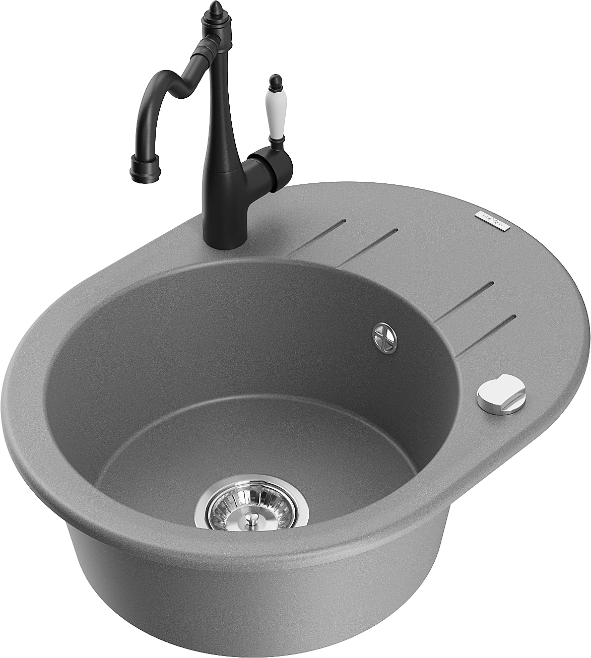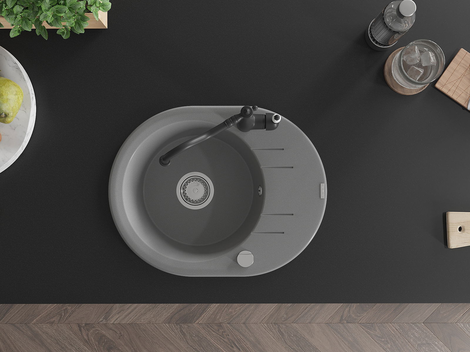 Mexen Kevin granitizlietne ar vienu nodalījumu ar noteces zonu un virtuves jaucējkrānu Carla, pelēks - 6517-71-670700-70