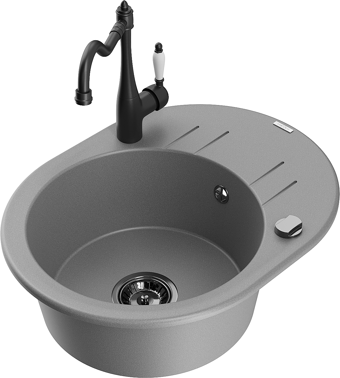 Mexen Kevin 1 kameras granīta izlietne ar noteku un virtuves jaucējkrānu Carla, pelēka - 6517-71-670700-70-B