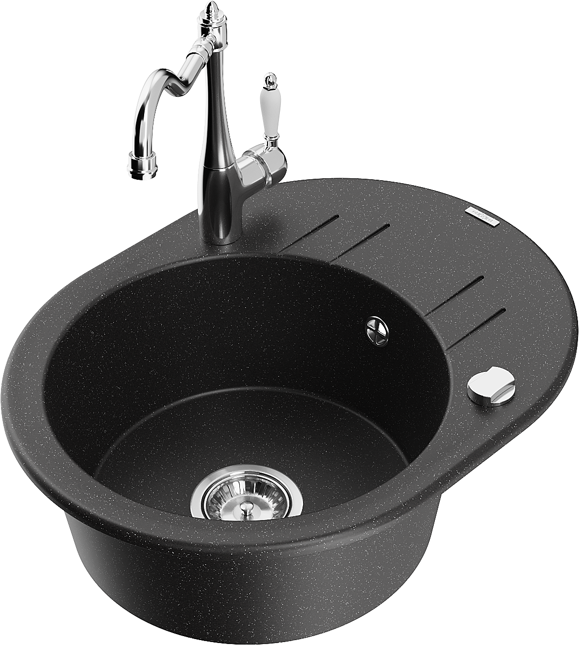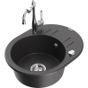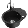 Mexen Kevin granitizlietne 1 nodalījums ar notecēšanas virsmu un virtuves jaucējkrāns Carla, melns/sudrabains metālisks
