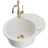 Izlietnei ir 2 daļēji izurbtas atveres ar diametru 35 mm, kuras var pašrocīgi izsist. Tās var izmantot, piemēram, šķidruma dozatora uzstādīšanai, kas novērsīs plastmasas pudeļu klātbūtni virtuvē un piešķirs tai elegantu apdari.