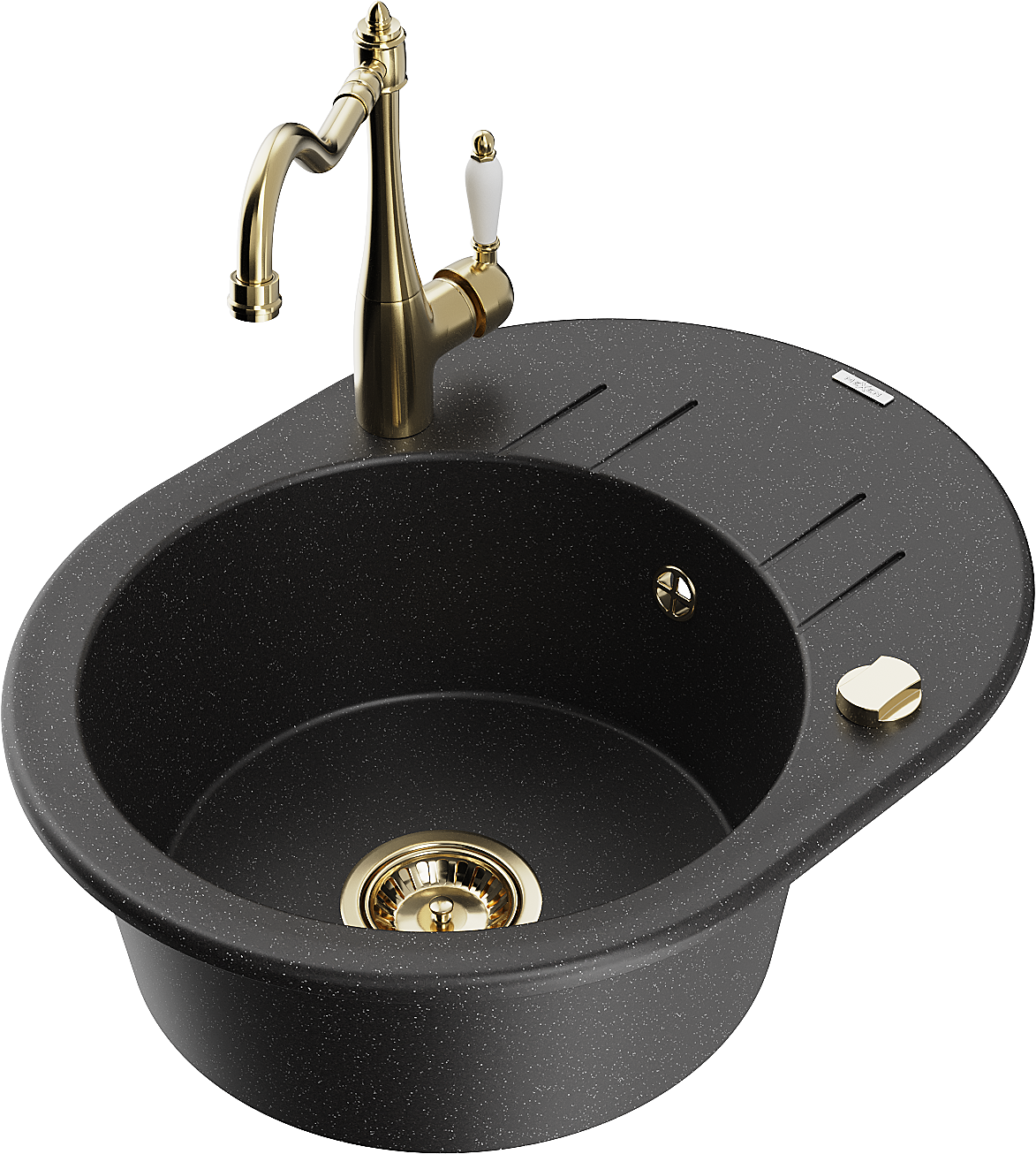 Mexen Kevin granitā izlietne ar 1 kameru un noteces vietu un virtuves krānu Carla, melns/sudraba metāliks - 6517-73-670700-50