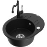 Mexen Kevin granīta virtuves izlietne ar vienu nodalījumu, notecinātuvēm un virtuves jaucējkrānu Carla, melna/zeltīta