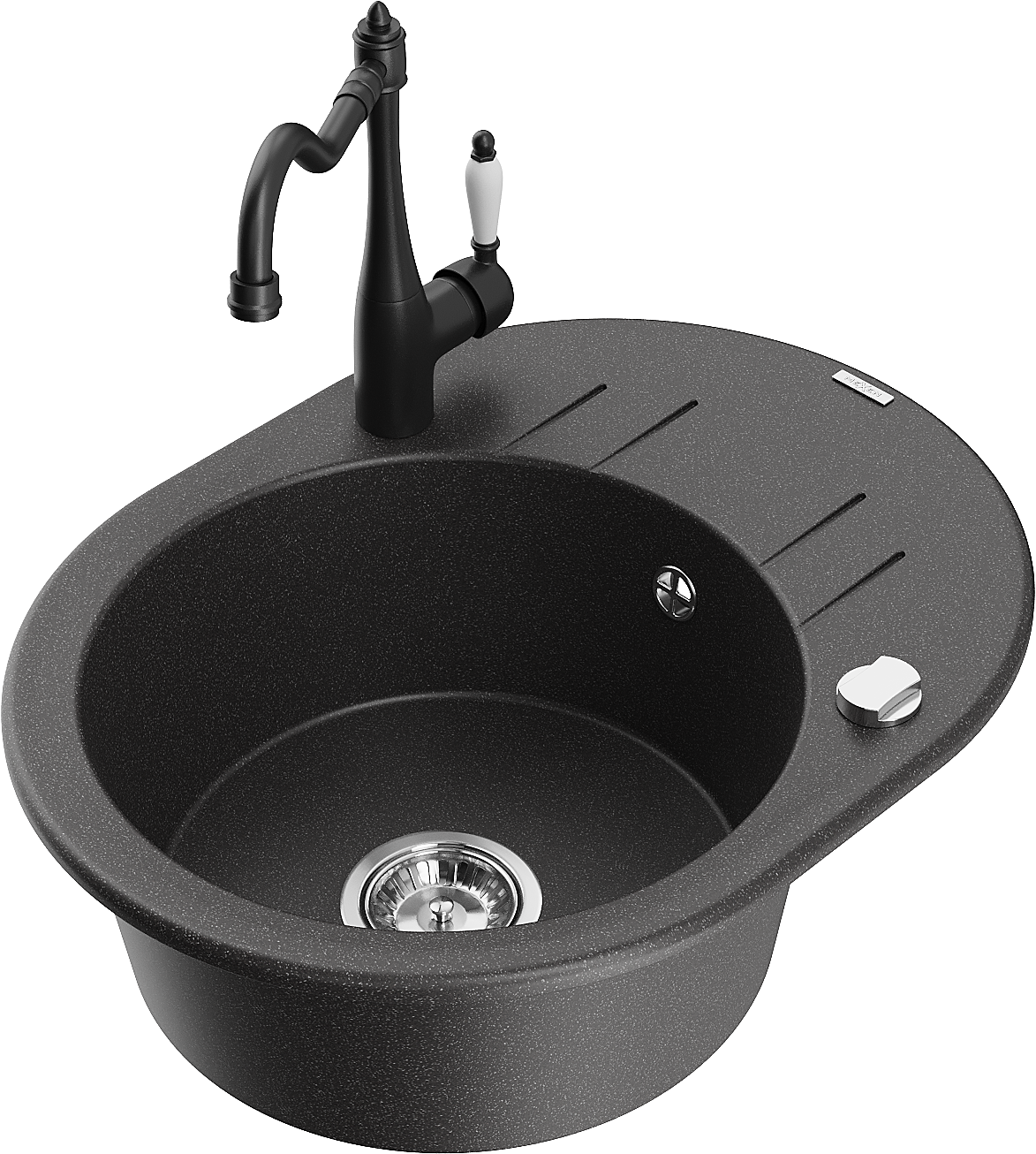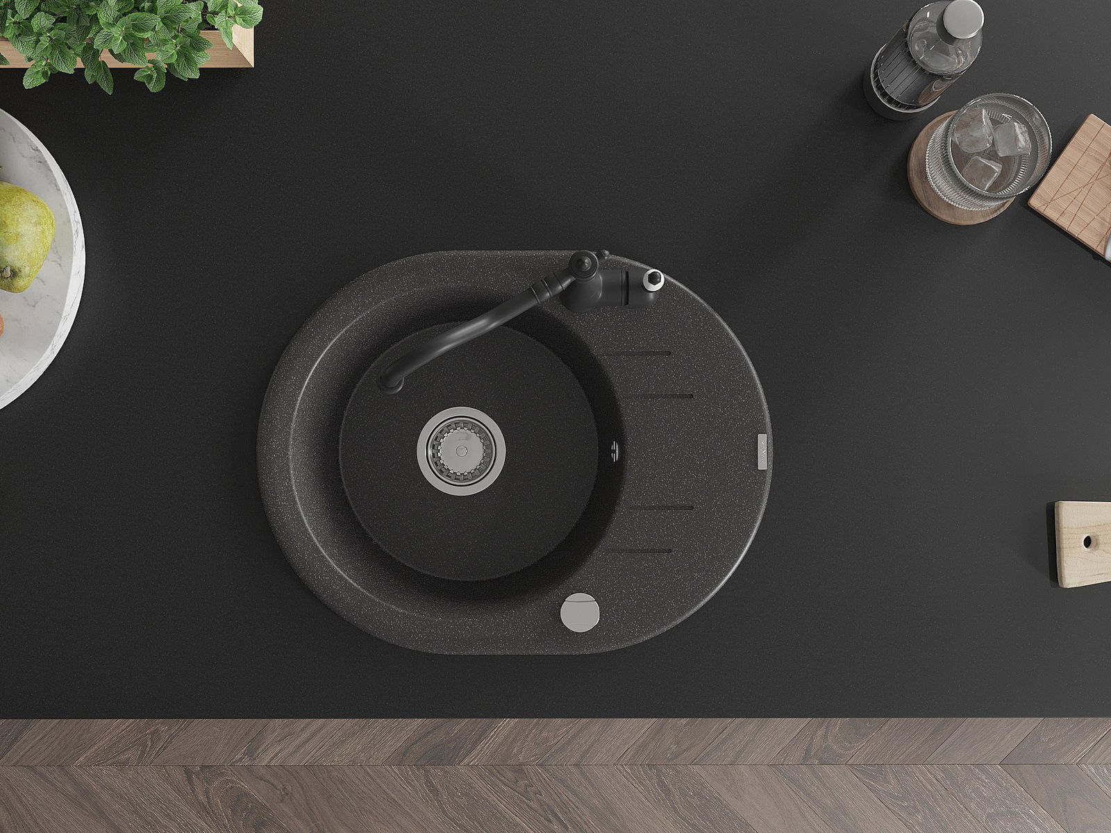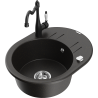 Mexen Kevin granīta izlietne ar vienu nodalījumu ar noteku un virtuves jaucējkrānu Carla, melna ar punktiem
