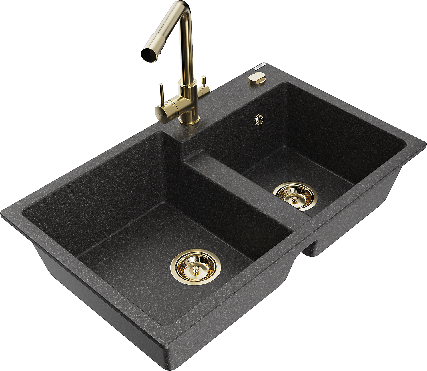 Mexen Tomas divu nodalījumu granīta izlietne ar virtuves jaucējkrānu Duero, melna ar plankumiem - 6516-76-671600-50