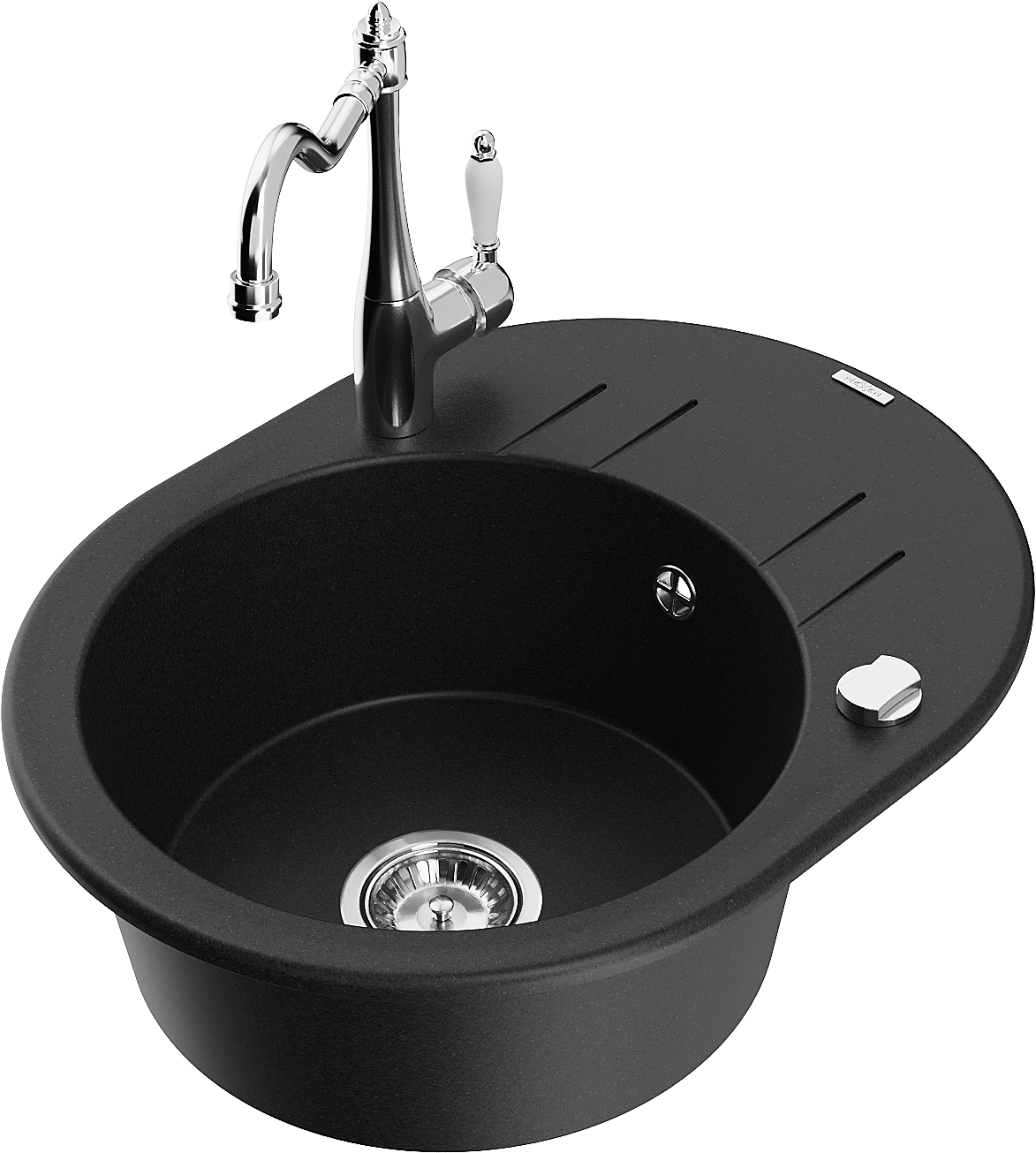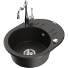 Mexen Kevin granitizlietne ar vienu nodalījumu ar notecētāju un virtuves jaucējkrānu Carla, melns - 6517-77-670700-00
