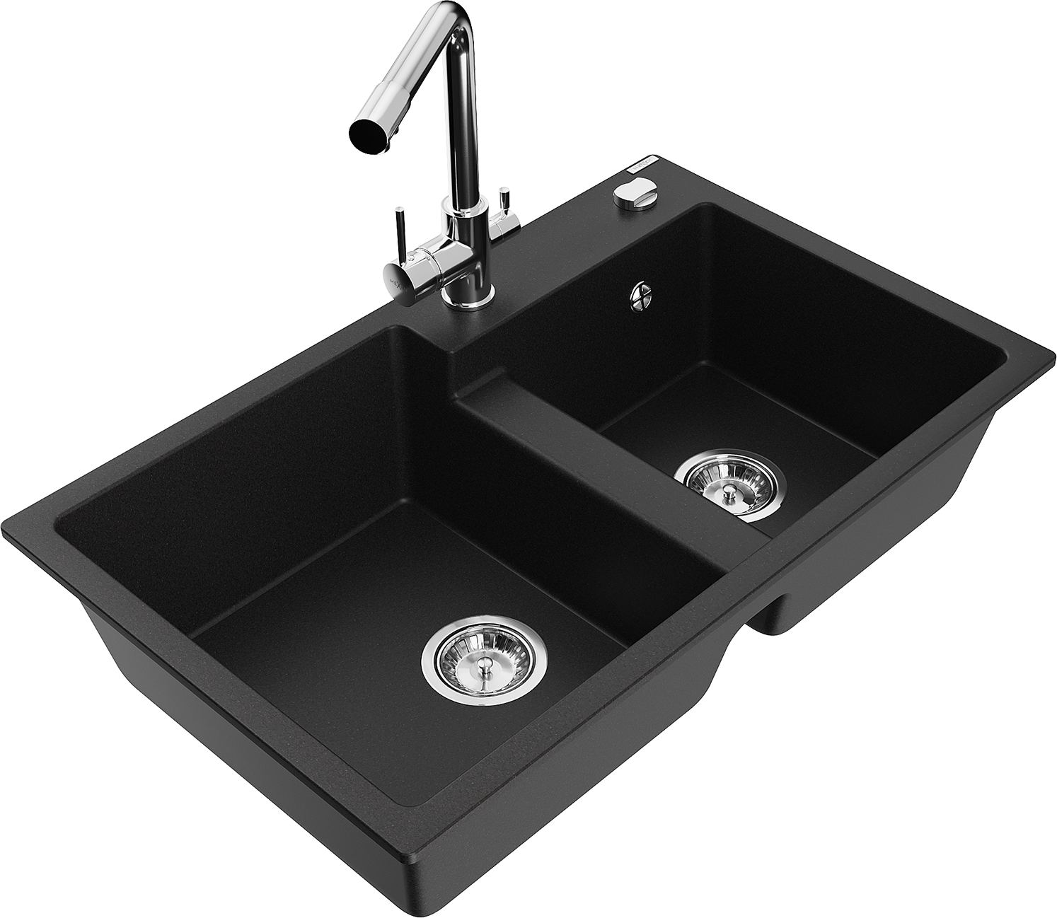 Mexen Tomas granit izlietne ar divām kamerām un virtuves jaucējkrānu Duero, melna - 6516-77-671600-00