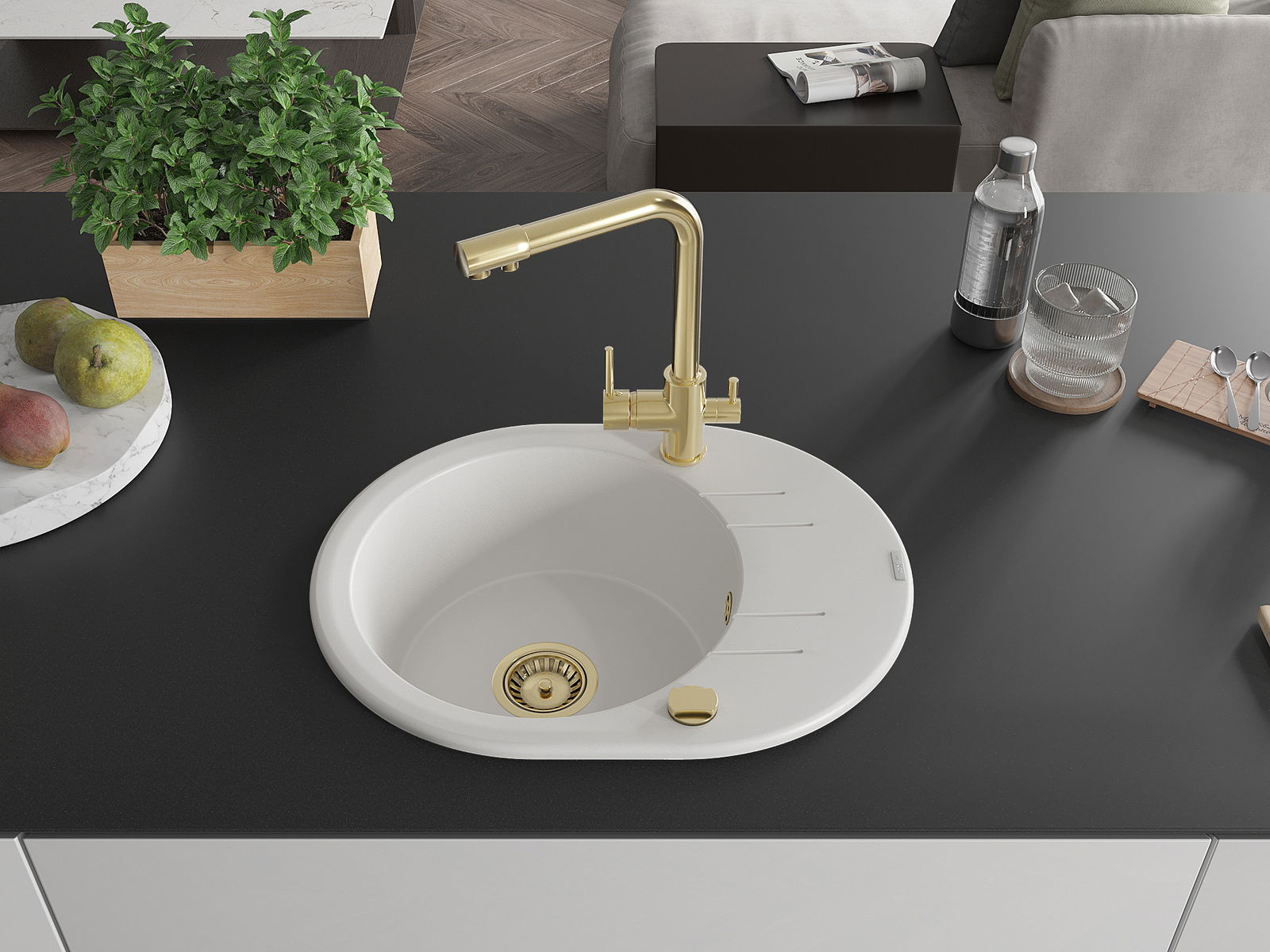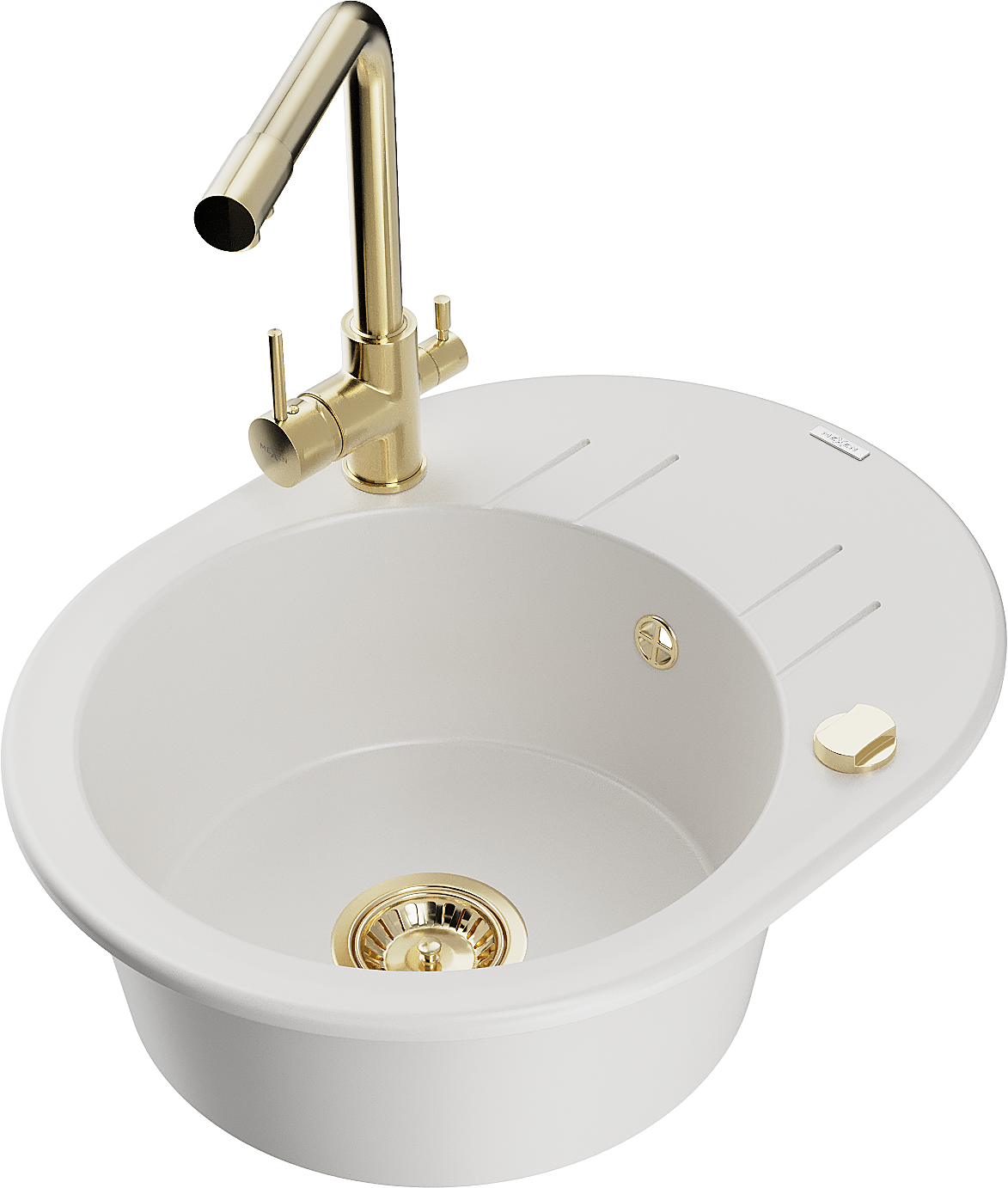Mexen Kevin granitizlietne izlietne ar 1 nodalījumu, notekpaplāti un virtuves jaucējkrānu Duero, balta - 6517-20-671600-50
