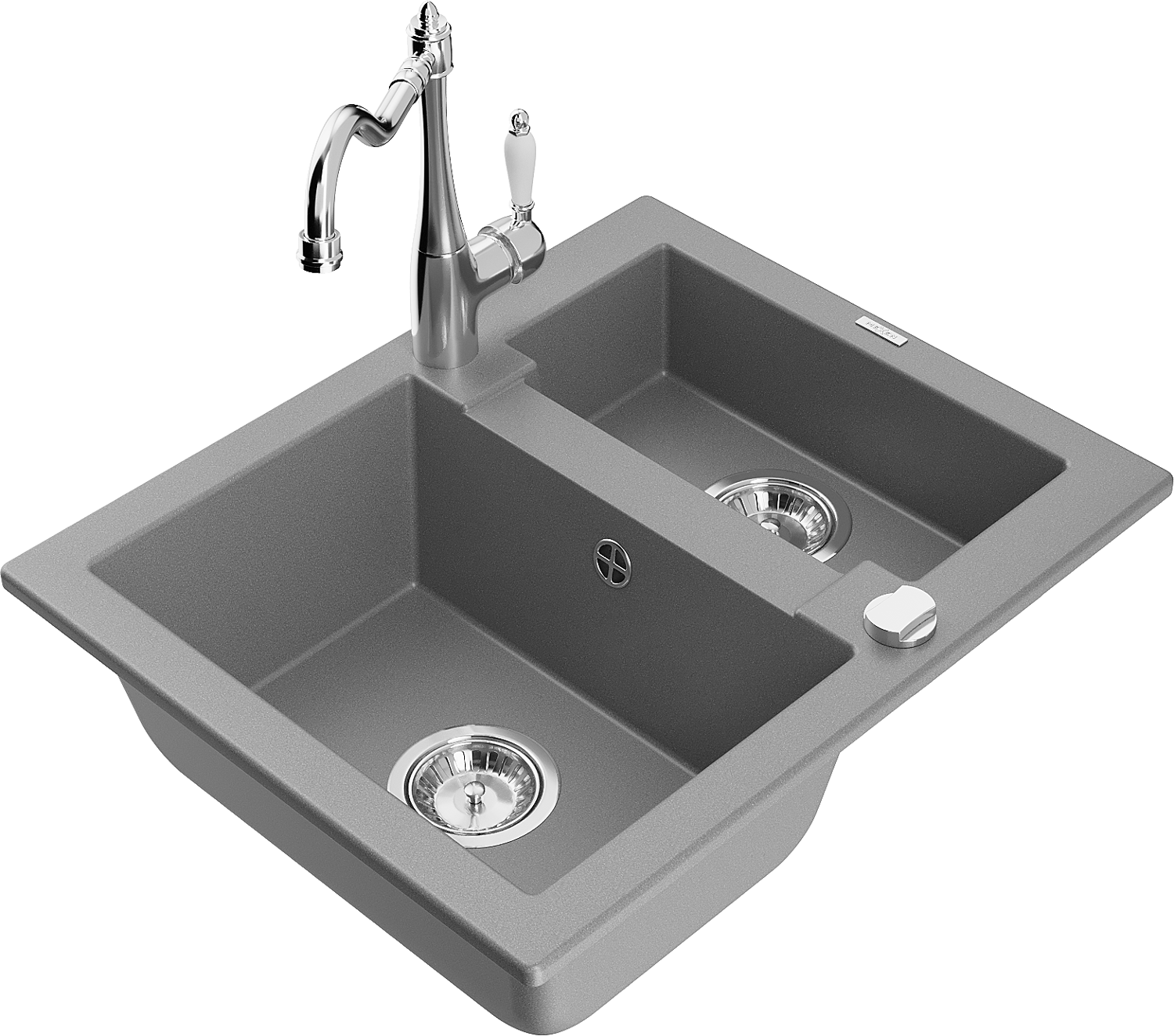 Mexen Carlos granitizlietne ar 1,5 nodalījumiem ar virtuves jaucējkrānu Carla, pelēks - 6518-71-670700-00