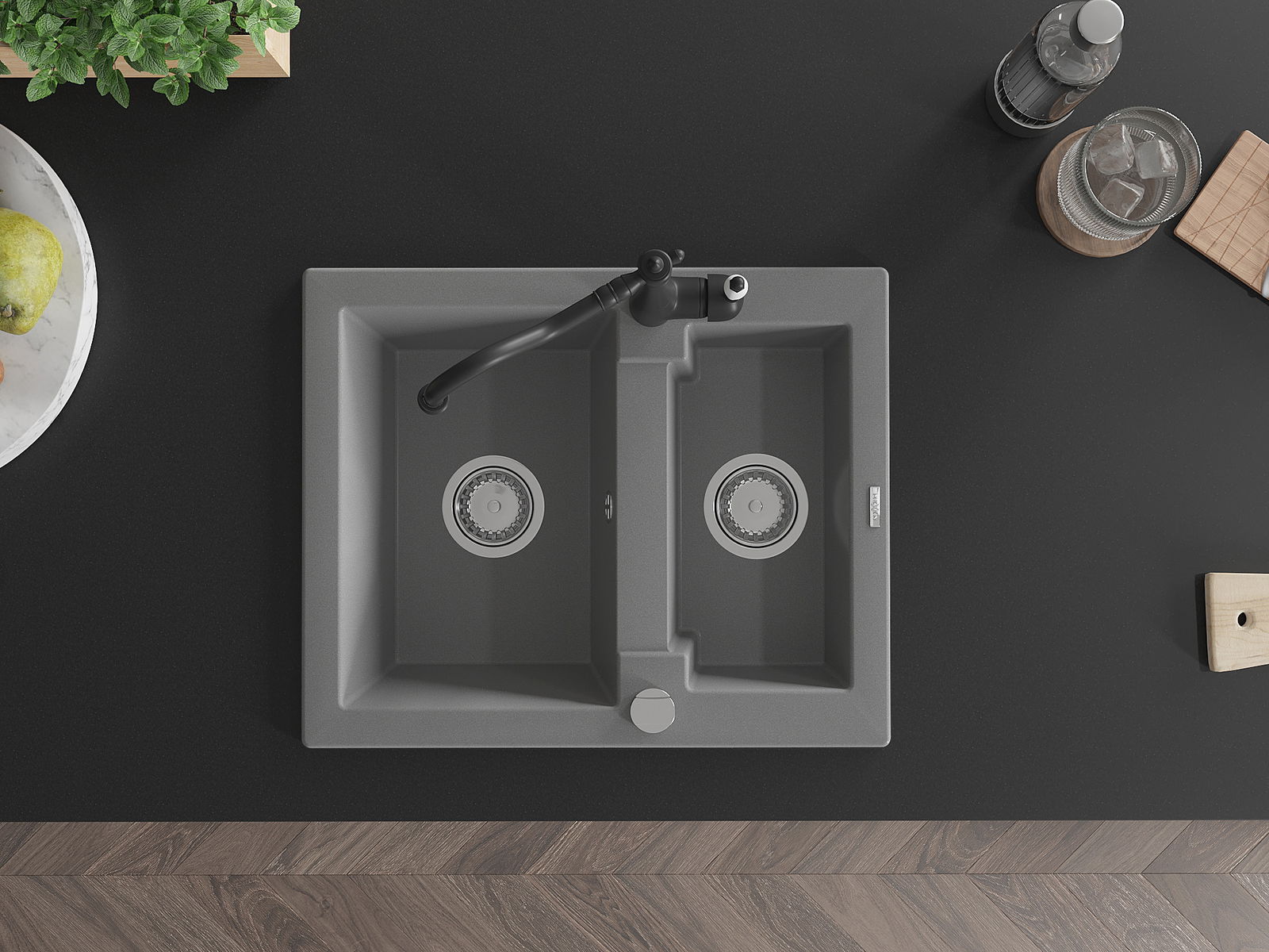 Mexen Carlos granīta izlietne 1,5 nodalījumu ar virtuves jaucējkrānu Carla, pelēka - 6518-71-670700-70