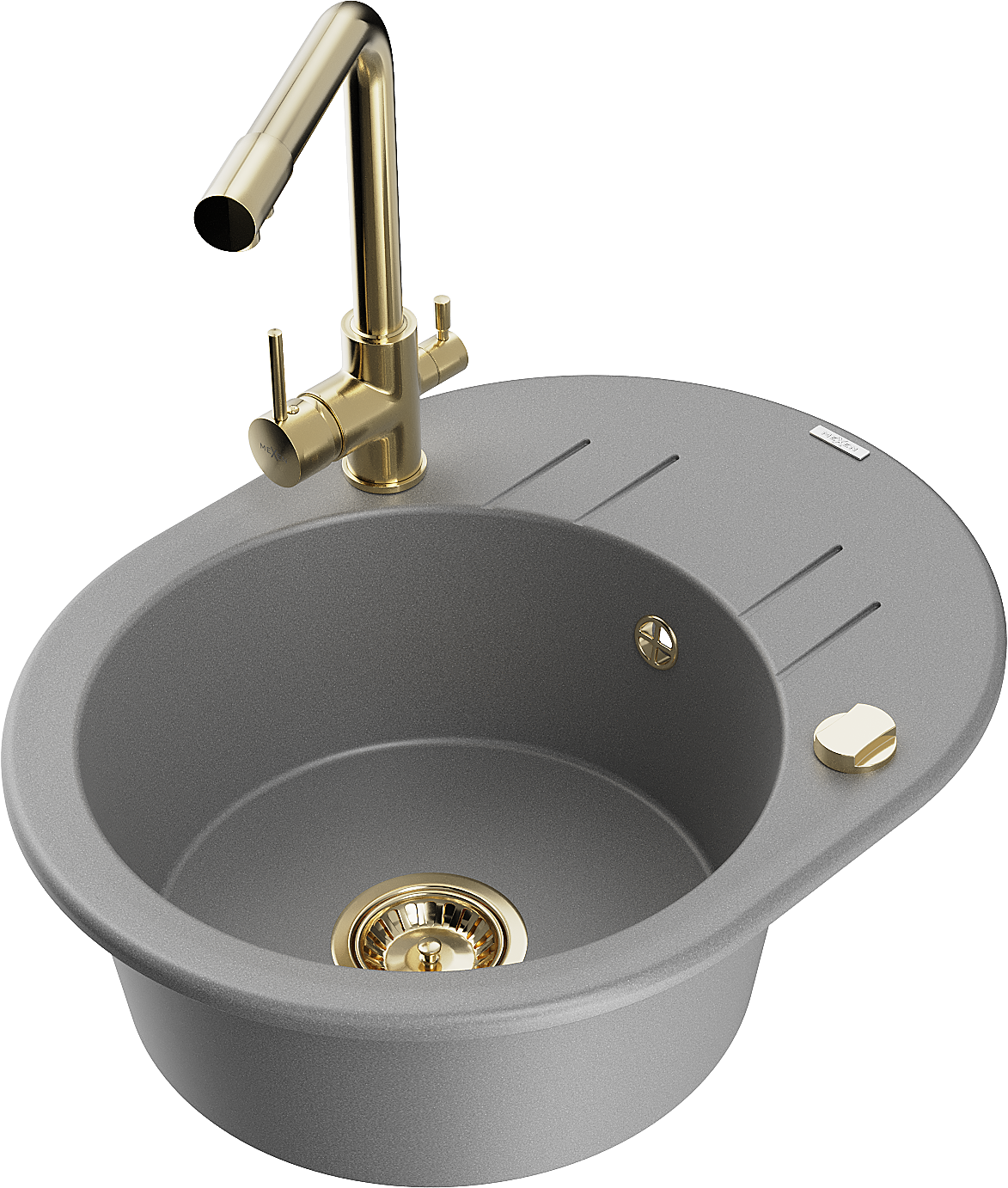 Mexen Kevin granīta izlietne ar vienu nodalījumu un noteku un virtuves jaucējkrānu Duero, pelēka - 6517-71-671600-50