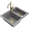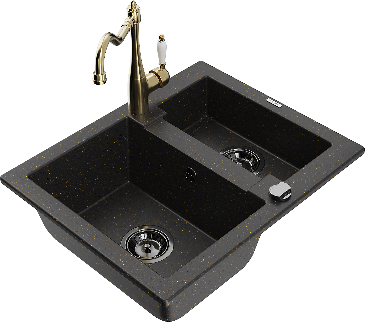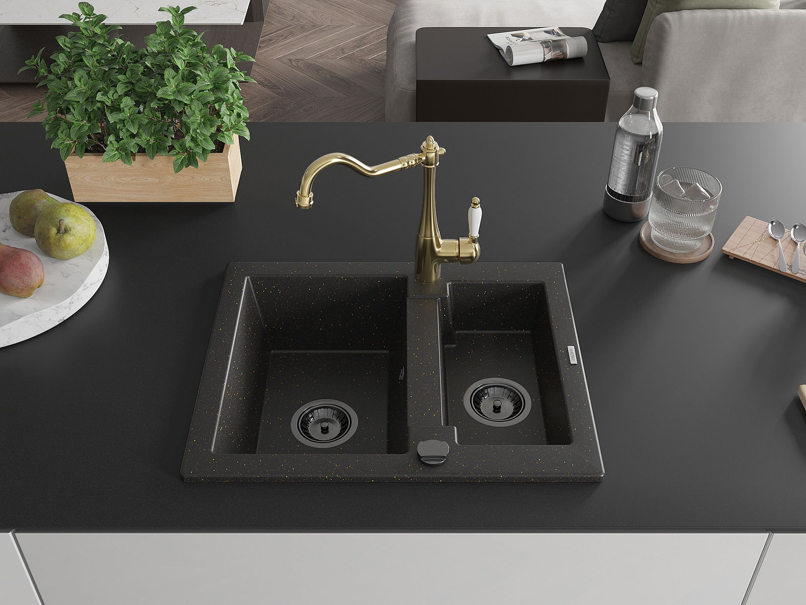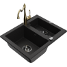 Mexen Carlos 1,5 nodalījuma granīta izlietne ar virtuves jaucējkrānu Carla, melns/zeltīts metālisks - 6518-75-670700-50-B