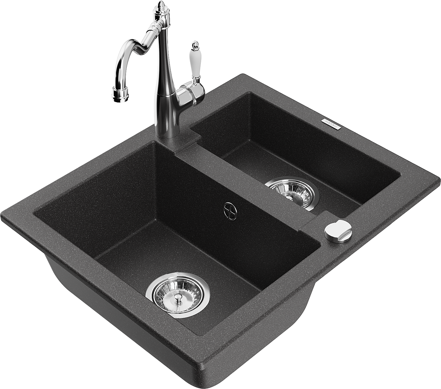 Mexen Carlos granīta izlietne ar 1,5 nodalījumu un Carla virtuves jaucējkrānu, melna ar punktiem - 6518-76-670700-00