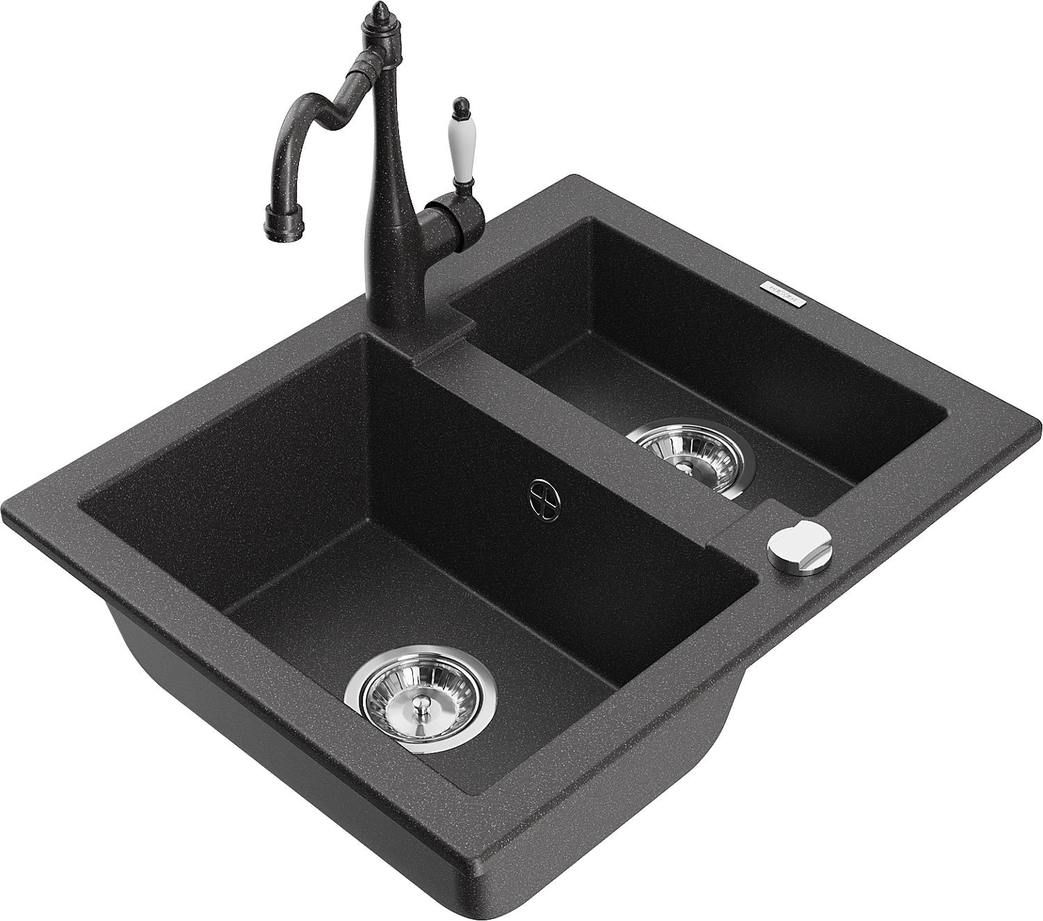 Mexen Carlos granīta izlietne 1,5-nodalījumu ar virtuves jaucējkrānu Carla, melns ar plankumiem - 6518-76-670700-76