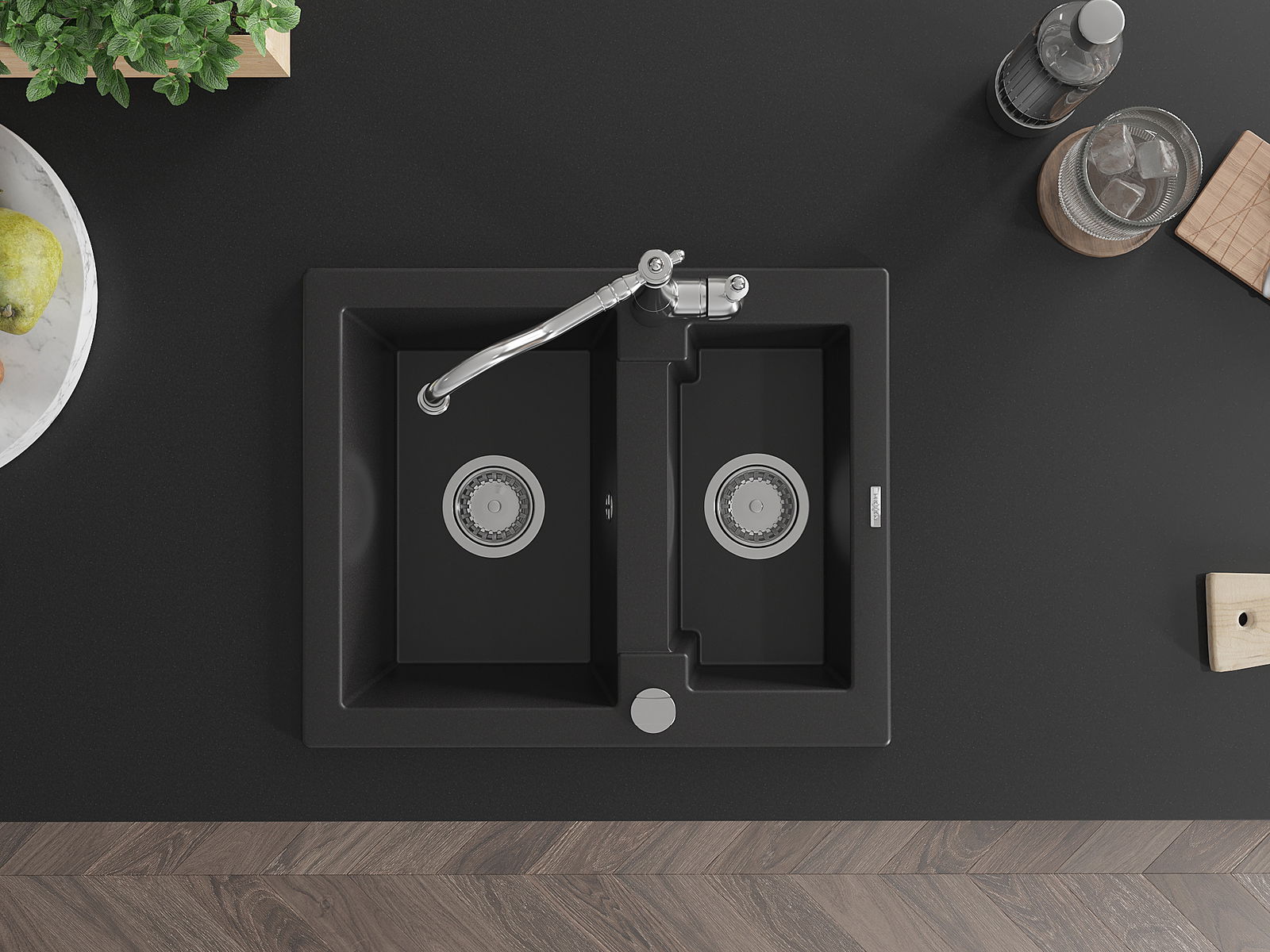 Mexen Carlos granitīgs izlietne 1,5 nodalījuma ar virtuves krānu Carla, melna - 6518-77-670700-00