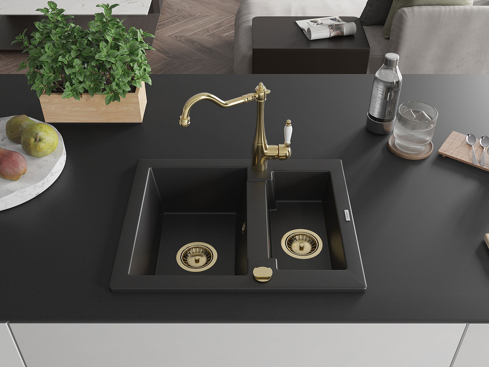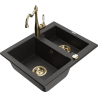 Mexen Carlos granitizlietnis ar 1,5 nodalījumiem un virtuves jaucējkrāns Carla, melns - 6518-77-670700-50