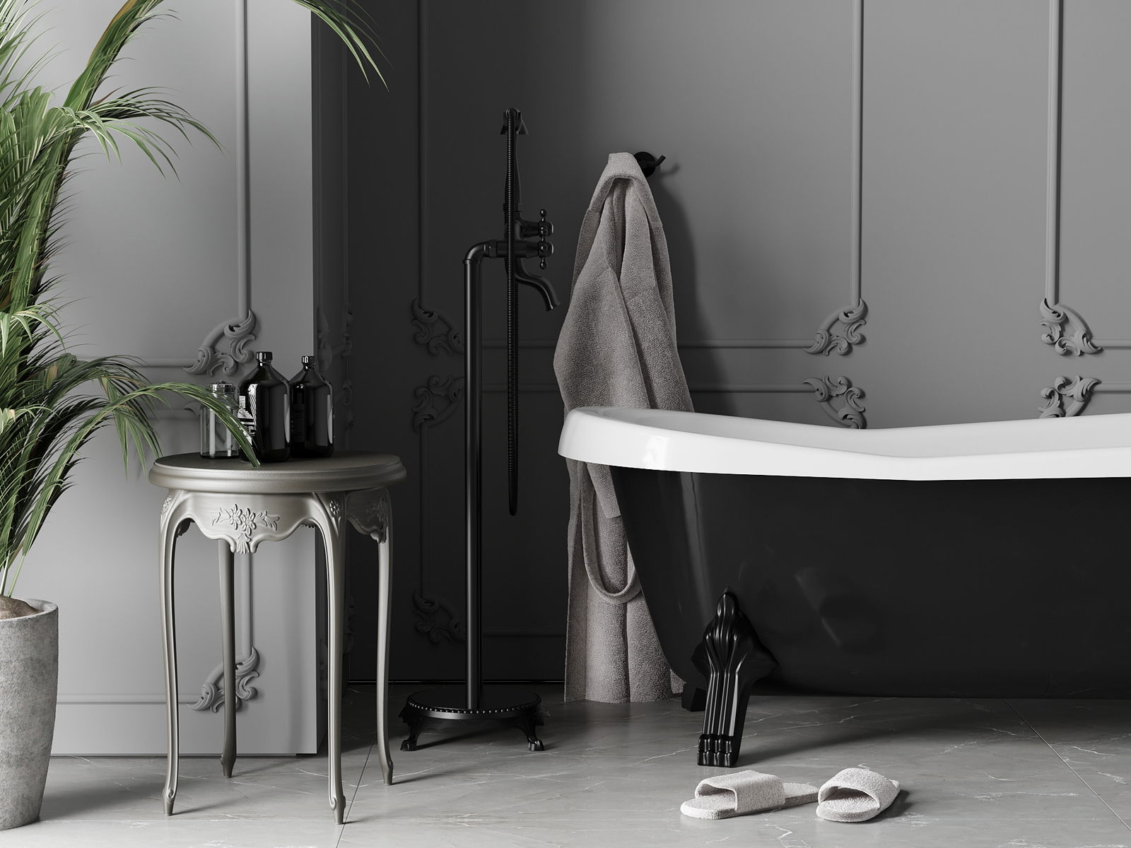 Mexen Retro brīvi stāvošs vannas jaucējkrāns, melns - 75933-70
