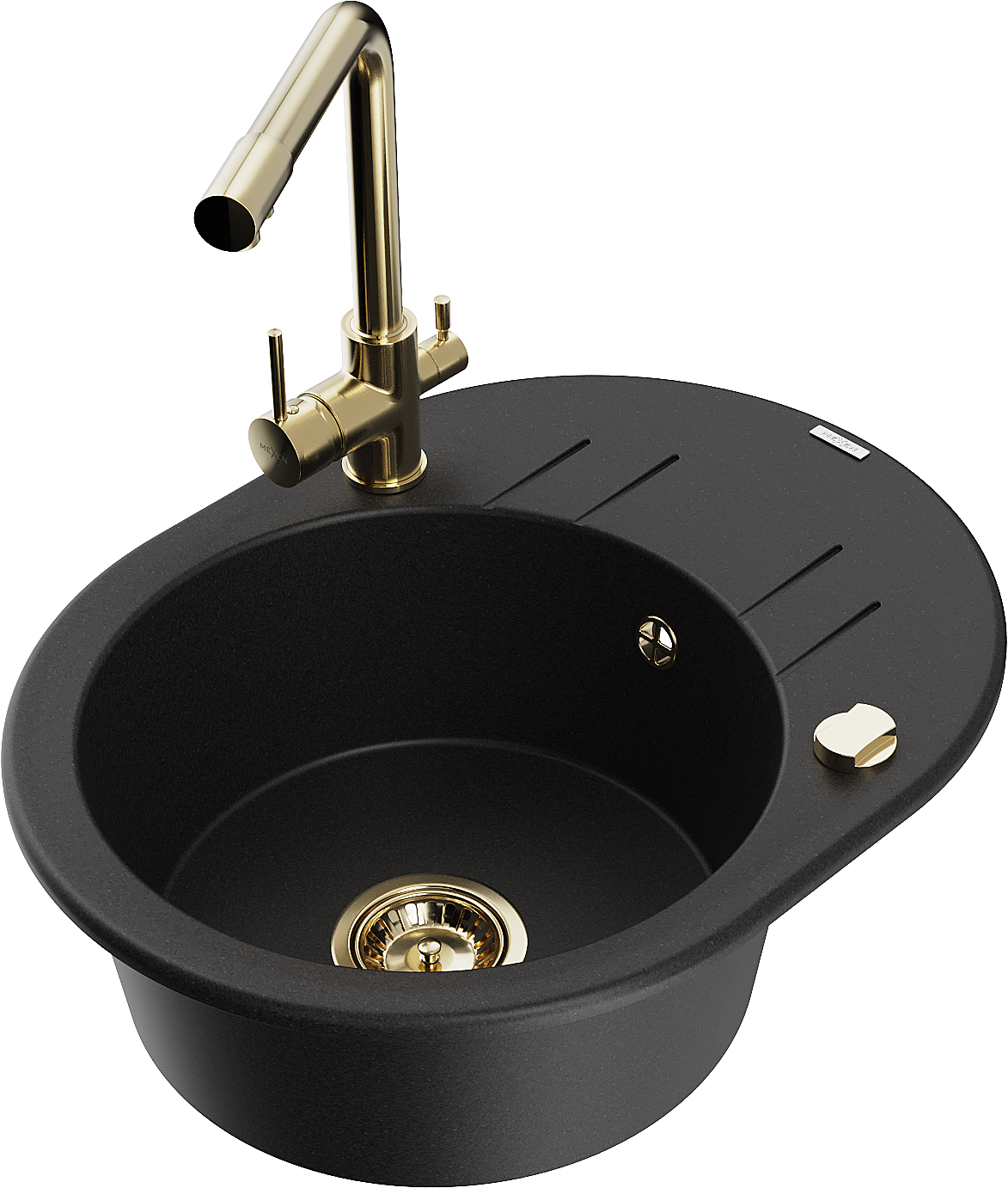 Mexen Kevin 1-kameras granīta izlietne ar notecinātāju un virtuves jaucējkrānu Duero, melna - 6517-77-671600-50