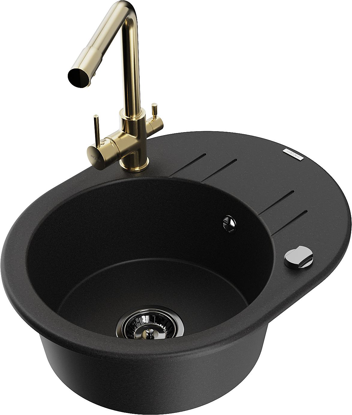 Mexen Kevin granitā izlietne ar vienu nodalījumu un notekpaplāti un Duero virtuves jaucējkrānu, melna - 6517-77-671600-50-B