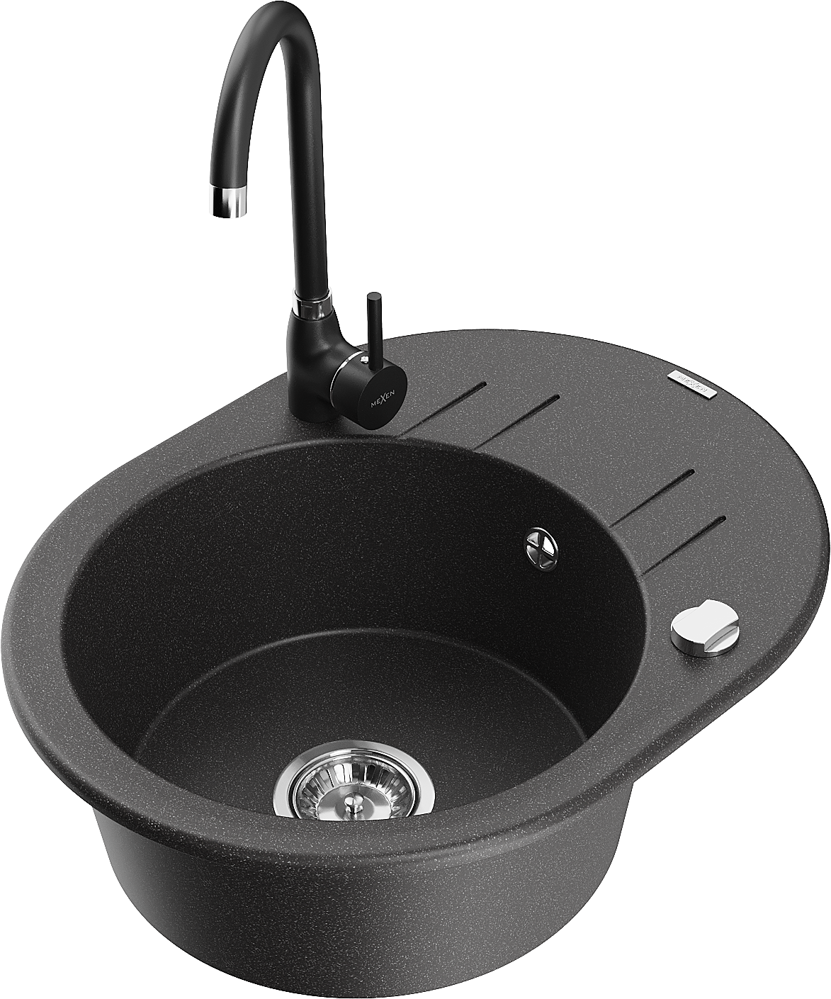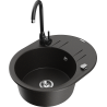 Mexen Kevin 1-kameras granīta izlietne ar noteces vietu un virtuves krānu Telma, melna ar raibām daļām - 6517-76-670200-70