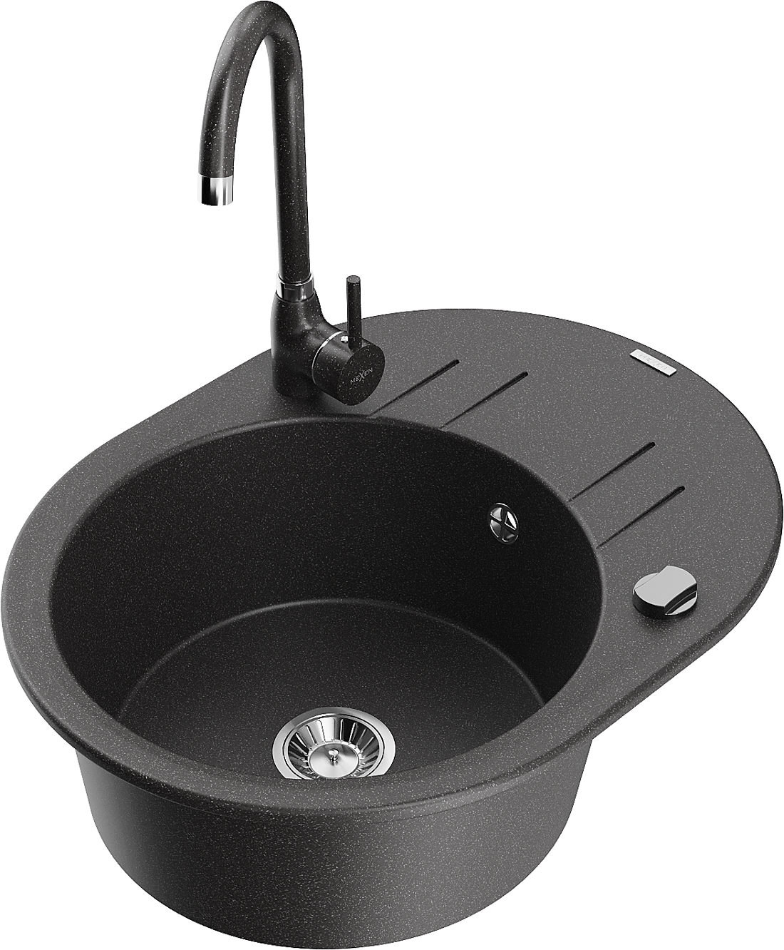 Mexen Kevin granīta izlietne ar vienu nodalījumu un noteka, un virtuves jaucējkrāns Telma, raibumains - 6517-76-670200-76