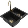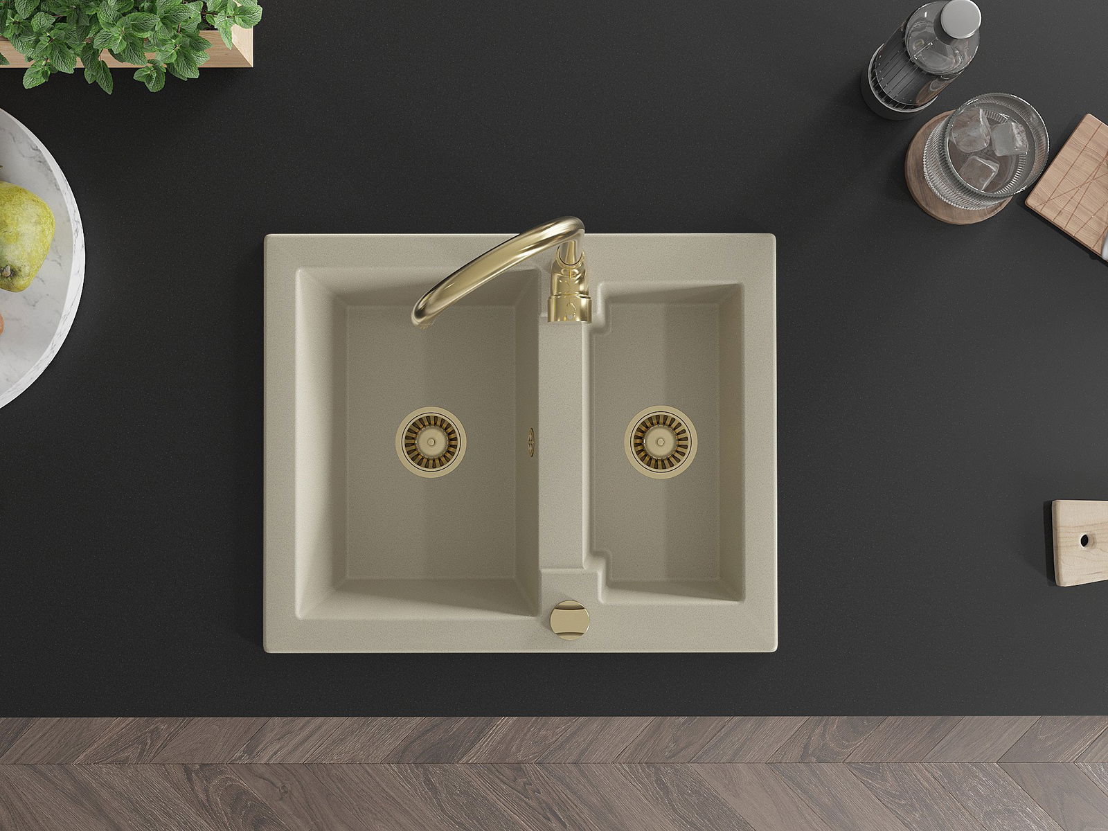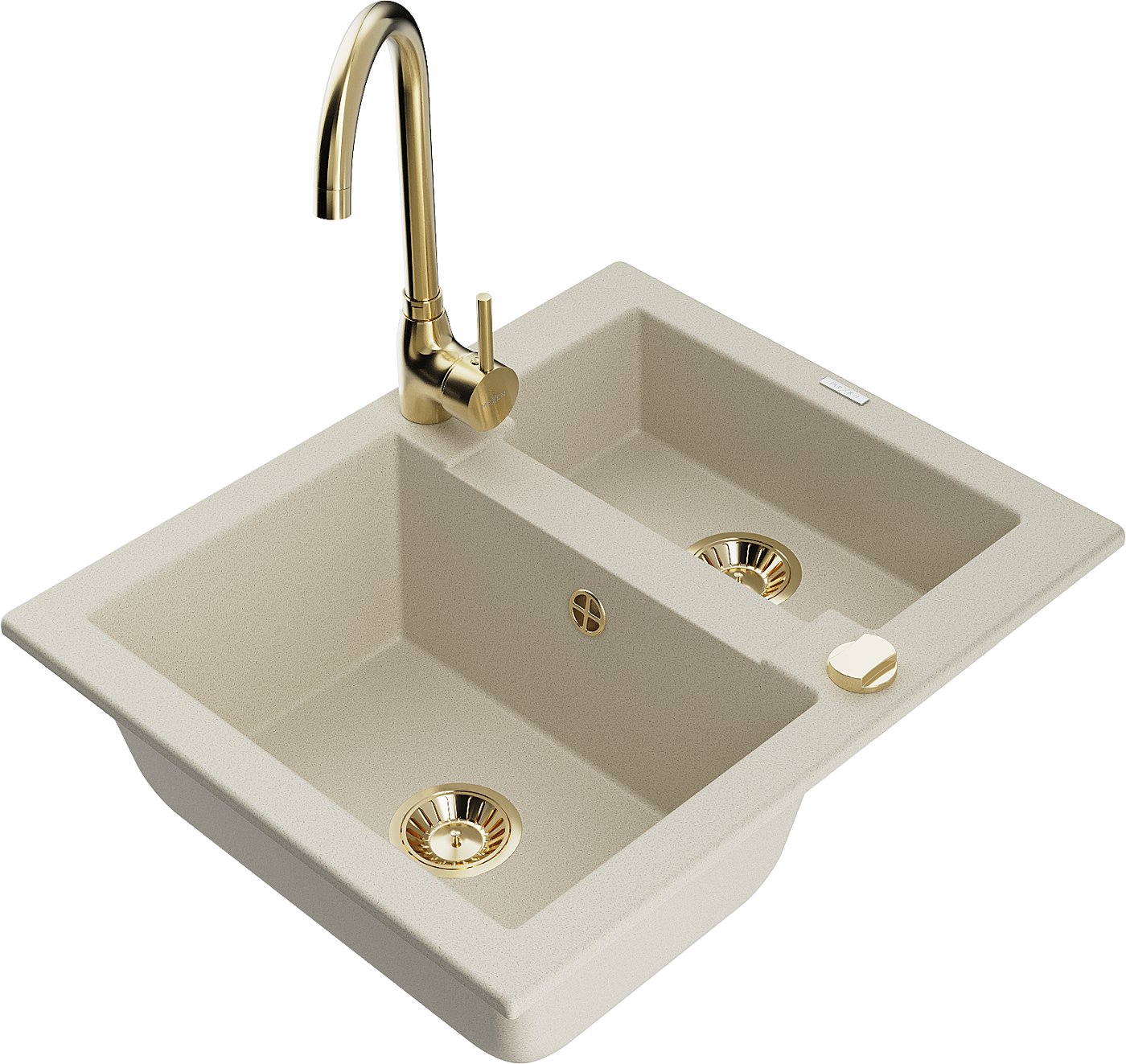Mexen Carlos granīta izlietne ar 1,5 kamerām un virtuves jaucējkrānu Telma, bēša - 6518-69-670200-50