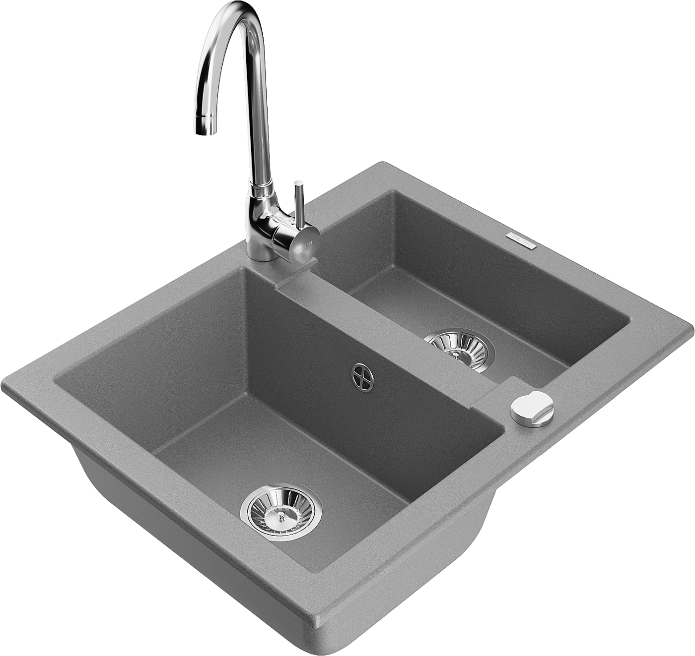 Mexen Carlos Granit izlietne ar 1,5 nodalījumiem un virtuves jaucējkrānu Telma, pelēka - 6518-71-670200-00