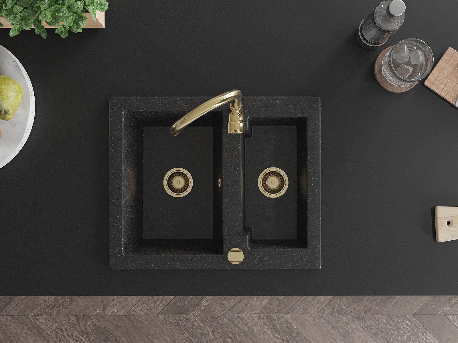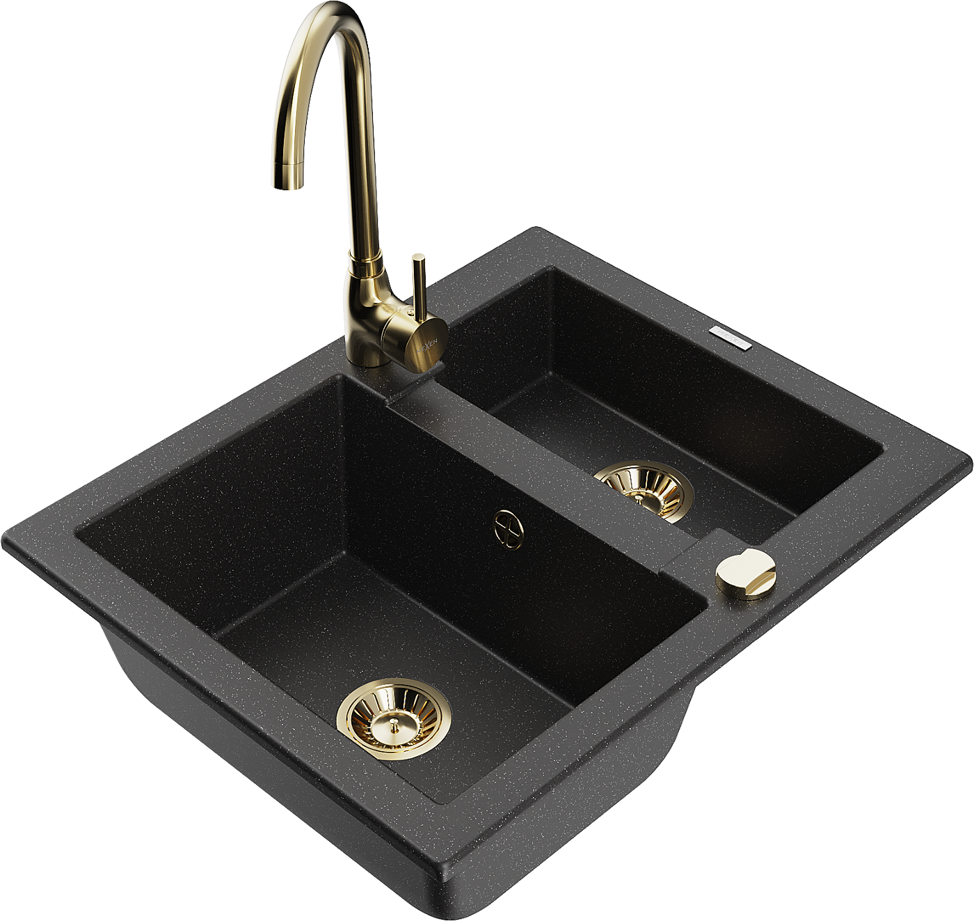 Mexen Carlos granīta izlietne ar 1,5 nodalījumu un virtuves jaucējkrānu Telma, melns/sudraba metāliks - 6518-73-670200-50