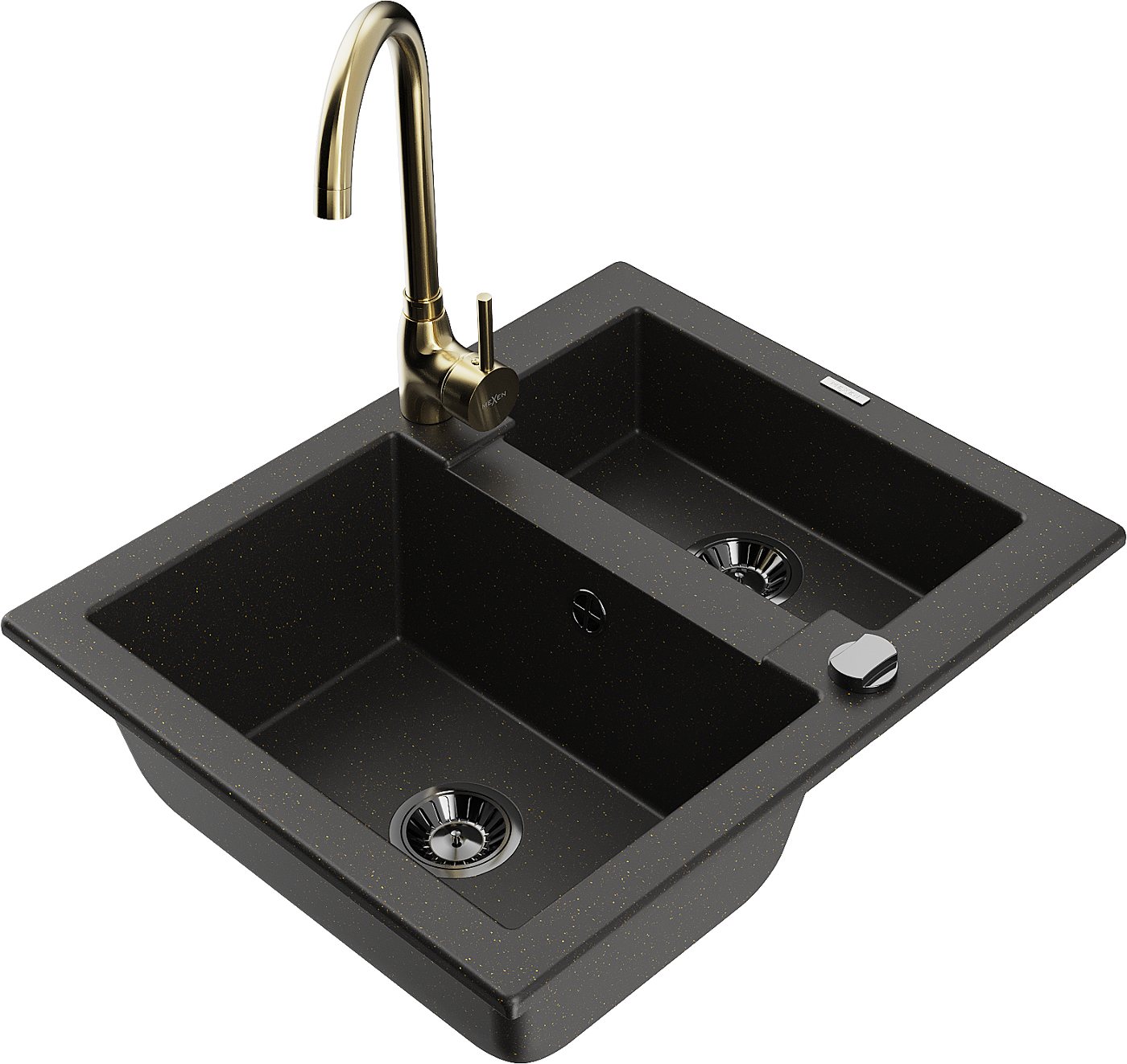 Mexen Carlos grants izlietne ar 1,5 nodalījumu un virtuves krānu Telma, melns/zeltains metālisks - 6518-75-670200-50-B