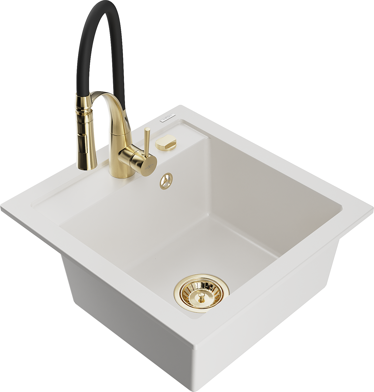 Mexen Vito granitē izlietne ar 1 nodalījumu un virtuves jaucējkrāns Aster, balts - 6503-20-73450-57-G