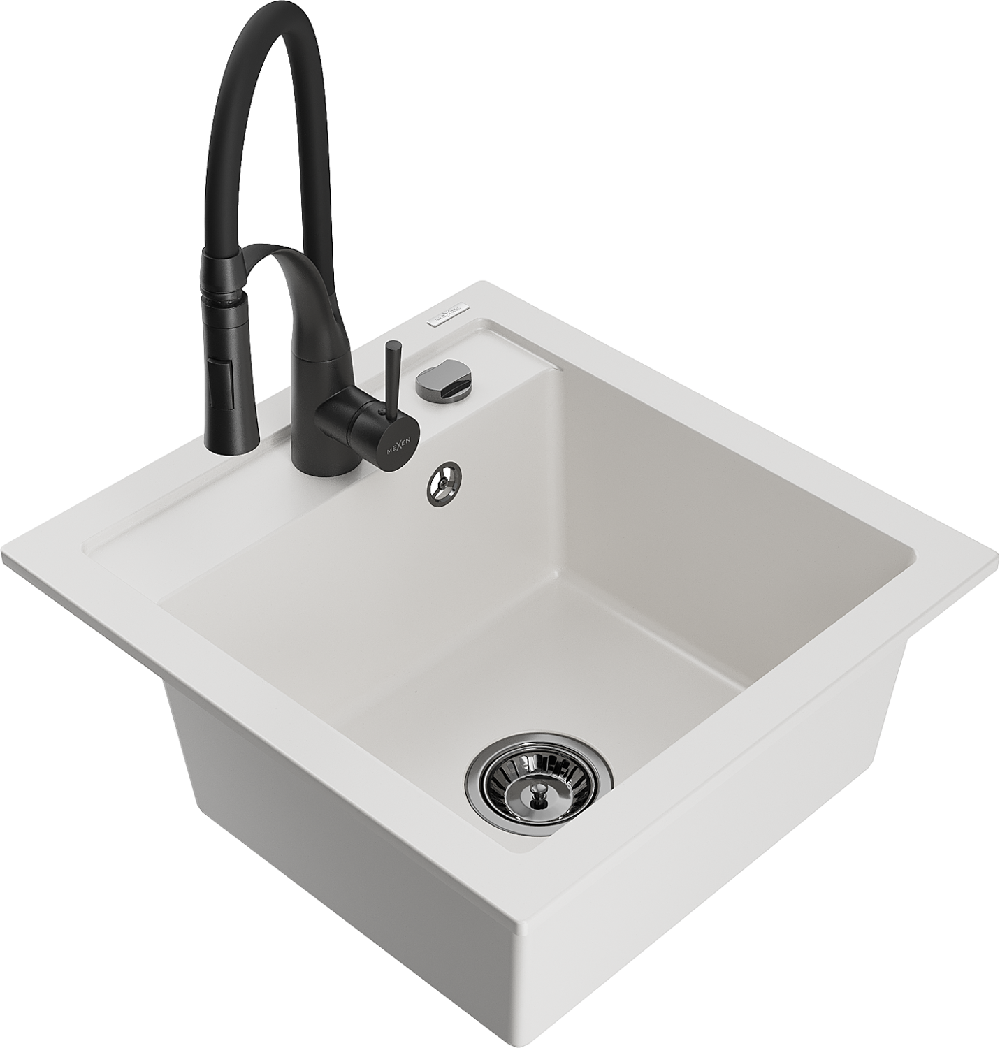 Mexen Vito granitā izlietne ar 1 nodalījumu un virtuves jaucējkrānu Aster, balta - 6503-20-73450-70-B