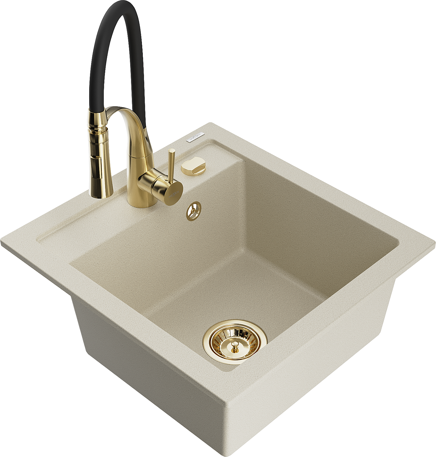 Mexen Vito granīta izlietne ar vienu nodalījumu un virtuves jaucējkrānu Aster, bēša - 6503-69-73450-57-G