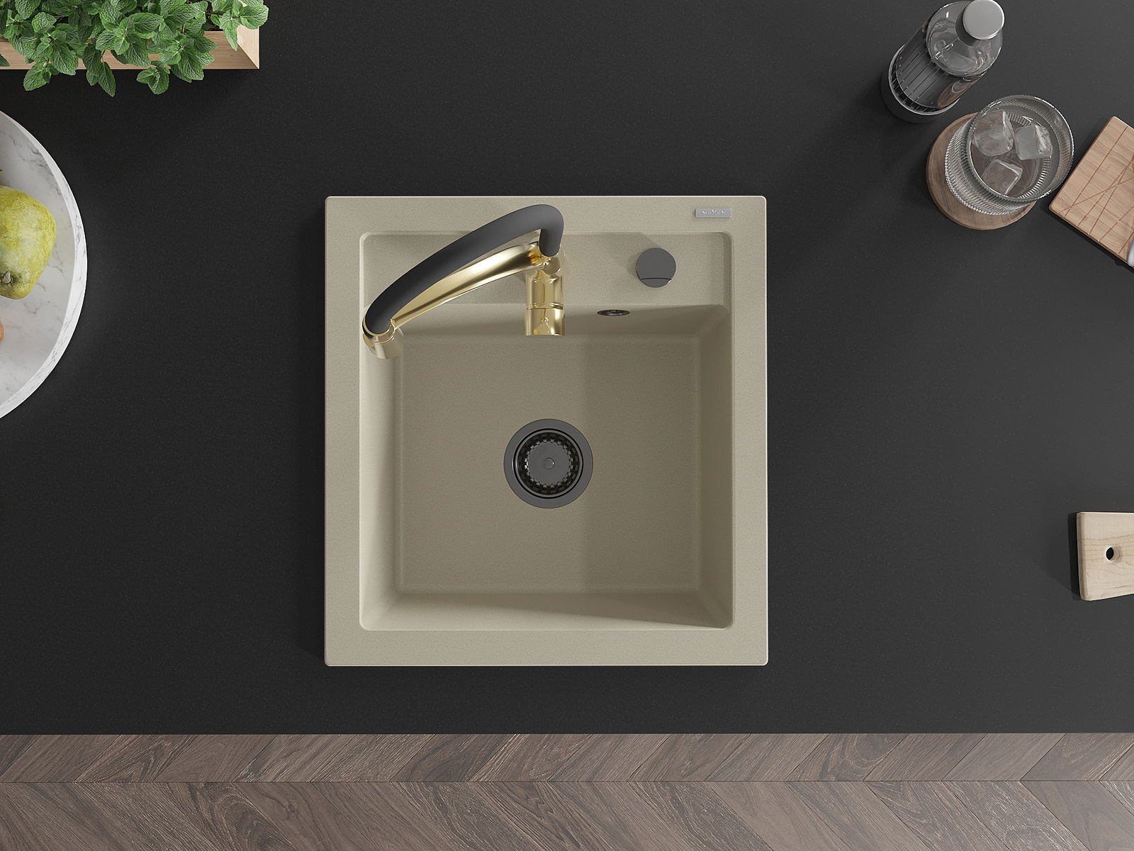 Mexen Vito granitizlietne 1 nodalījumu ar virtuves jaucējkrānu Aster, bēšs - 6503-69-73450-57-B
