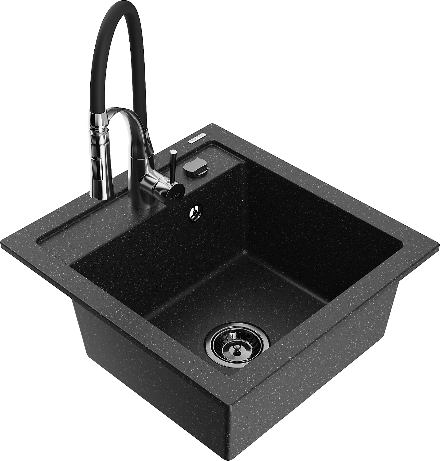 Mexen Vito granitēta izlietne ar 1 nodalījumu un virtuves maisītāju Aster, melna/sudraba metālika - 6503-73-73450-07-B