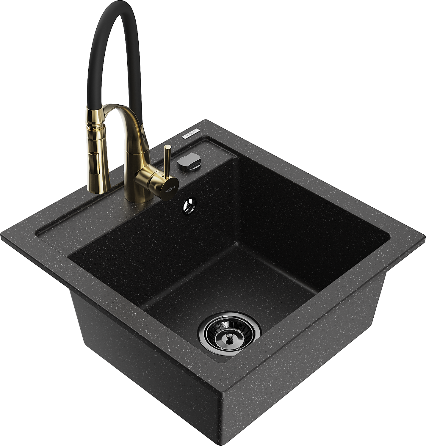 Mexen Vito granitais izlietne ar vienu nodalījumu un virtuves jaucējkrānu Aster, melns/sudraba metālisks - 6503-73-73450-57-B