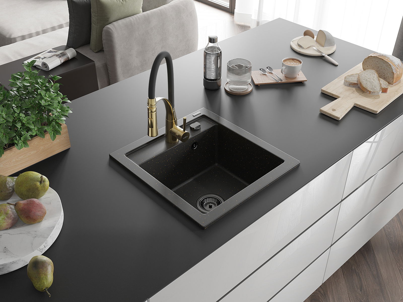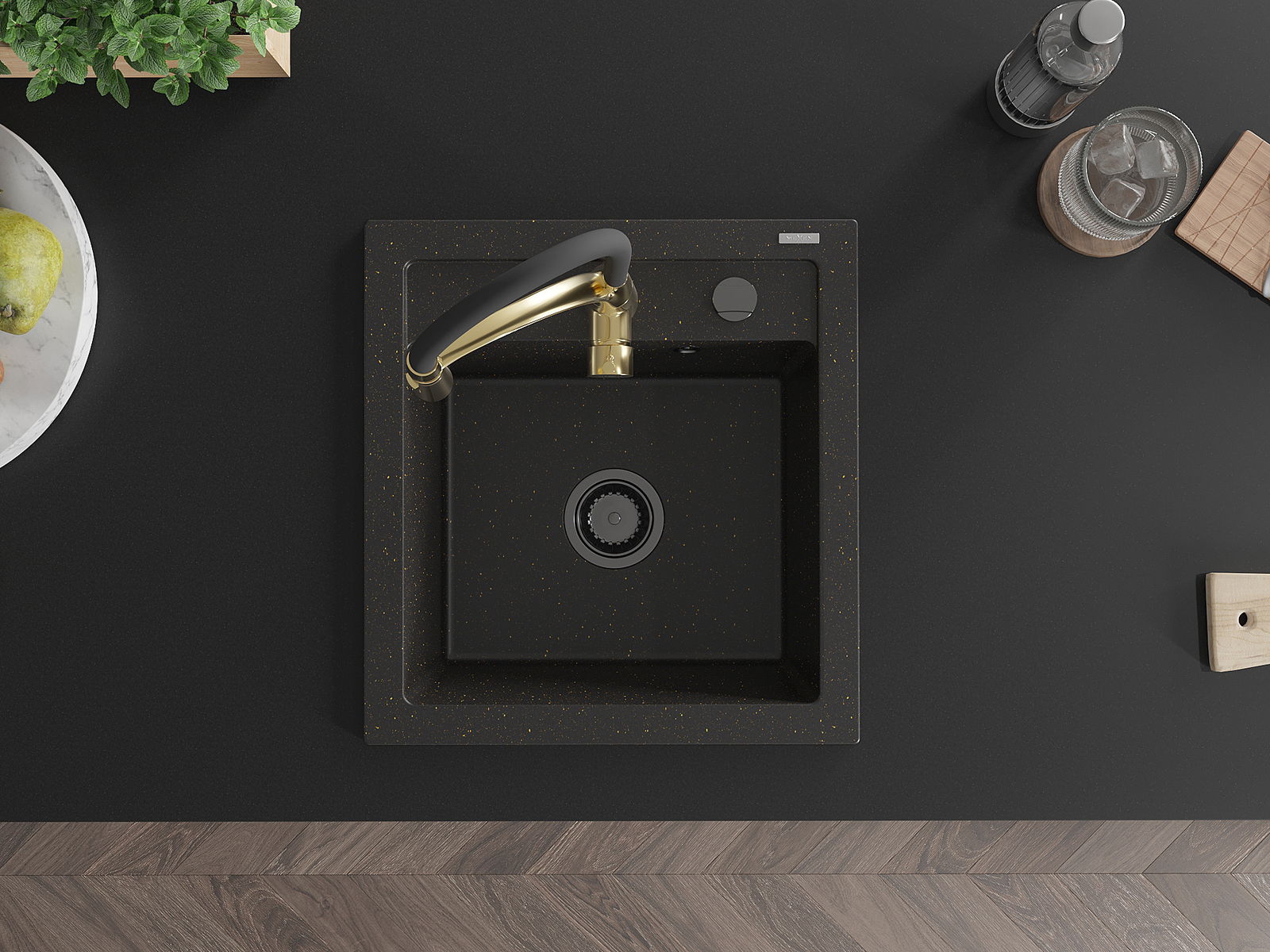Mexen Vito granitizlietne 1-kameras ar virtuves jaucējkrānu Aster, melna/zeltaina metāliks - 6503-75-73450-57-B