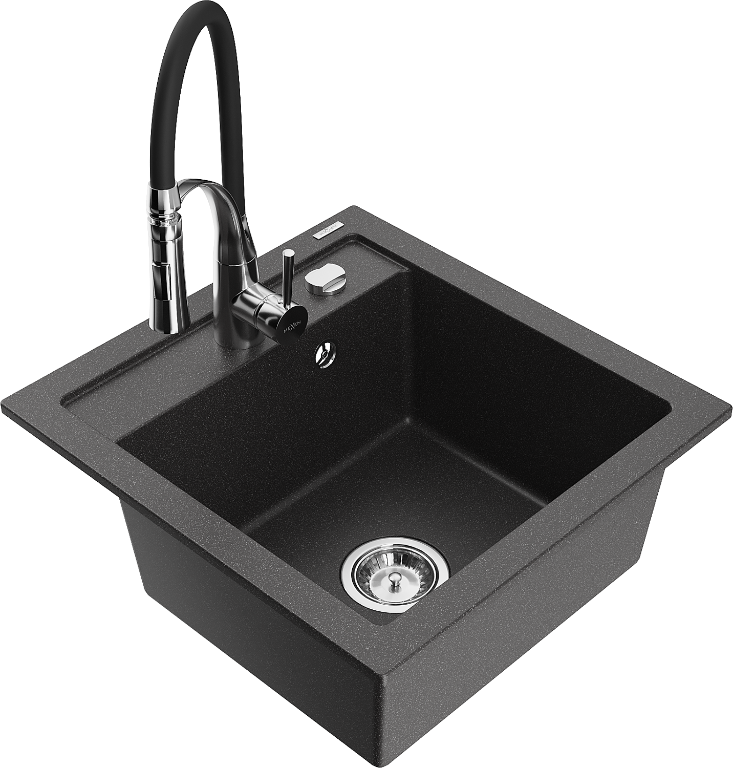Mexen Vito granīta izlietne ar vienu nodalījumu un virtuves maisītāju Aster, melns ar plankumiem - 6503-76-73450-07