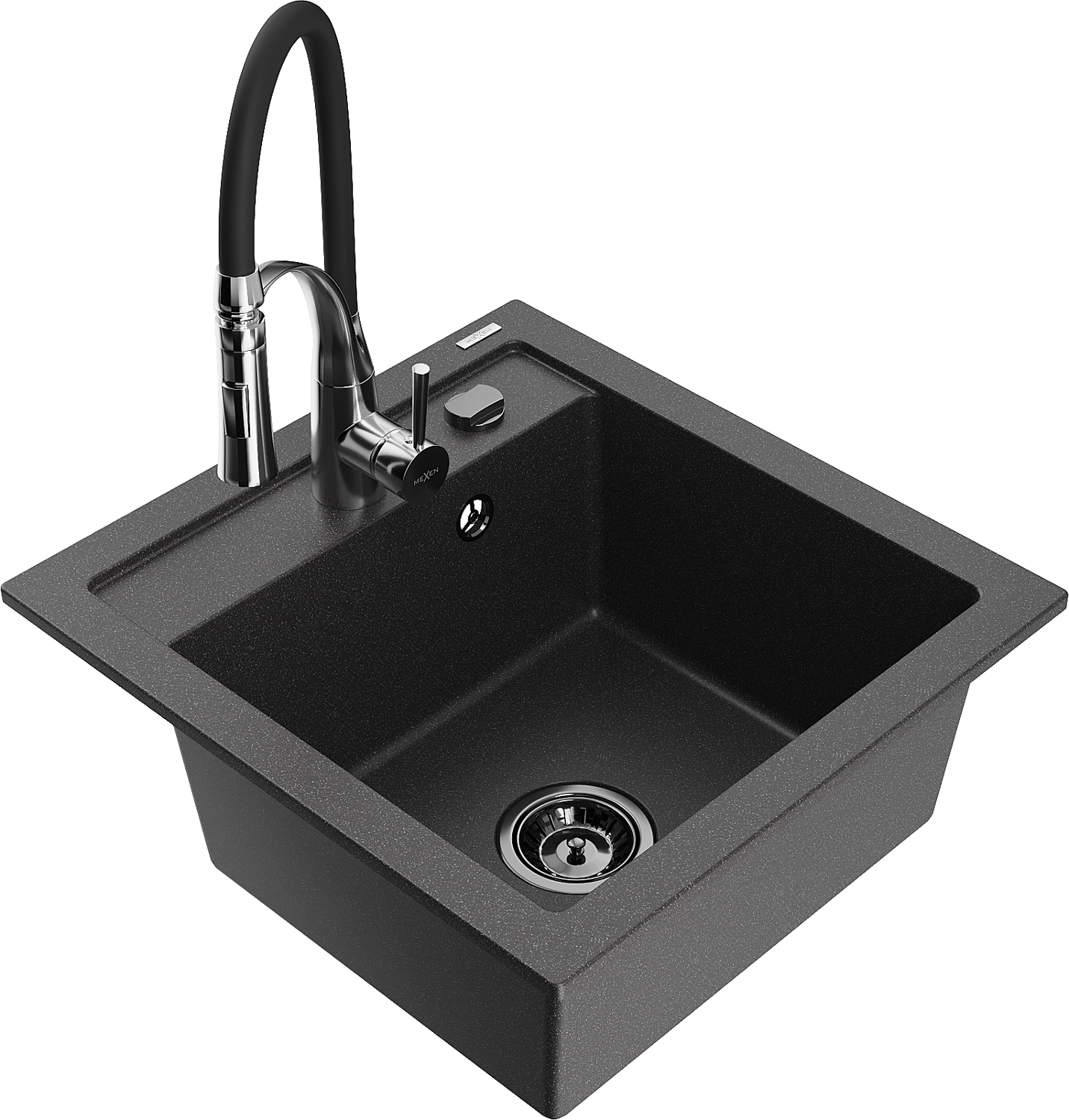 Mexen Vito granit izlietne ar 1 nodalījumu un virtuves jaucējkrānu Aster, melna ar plankumiem - 6503-76-73450-07-B