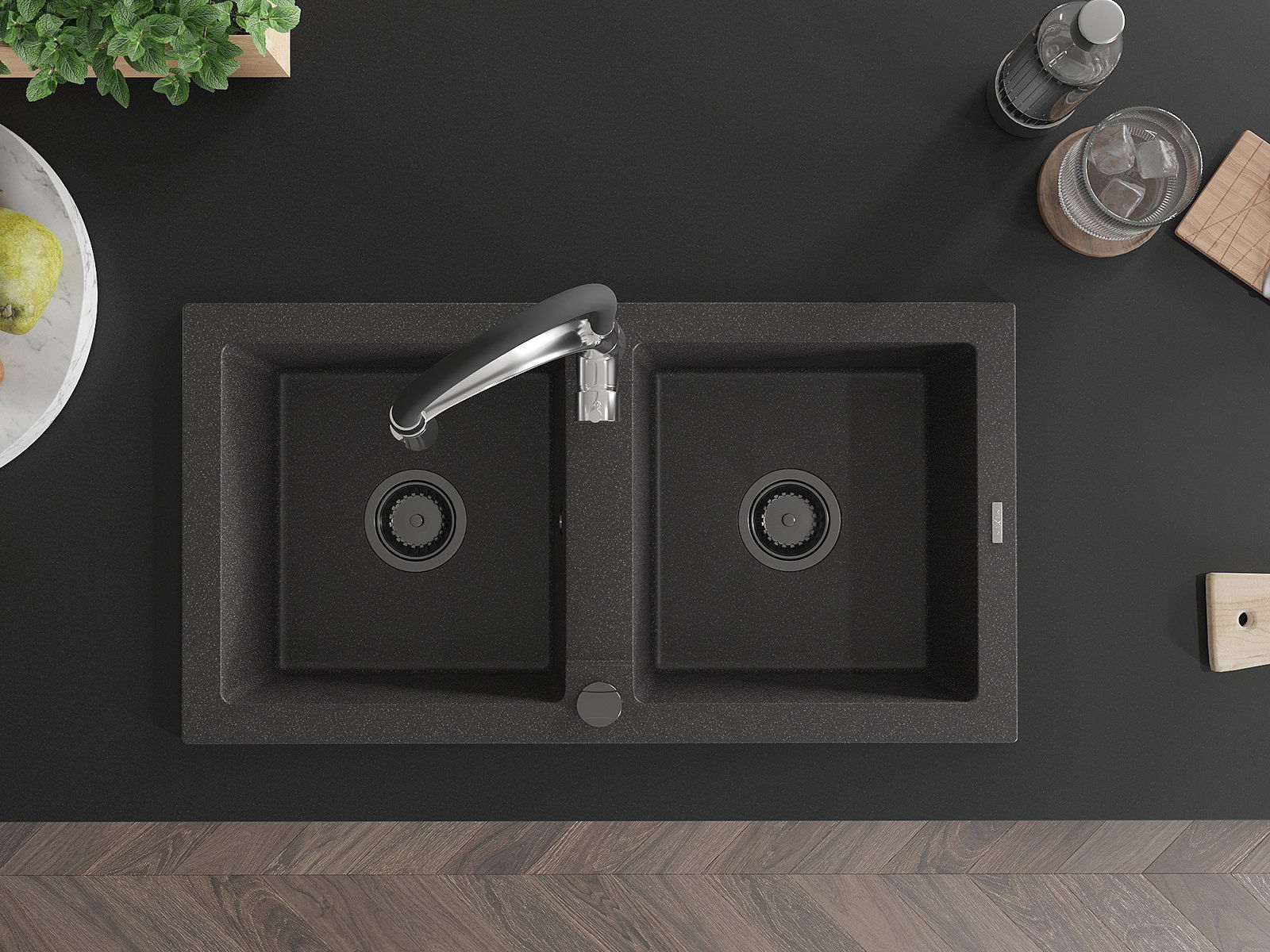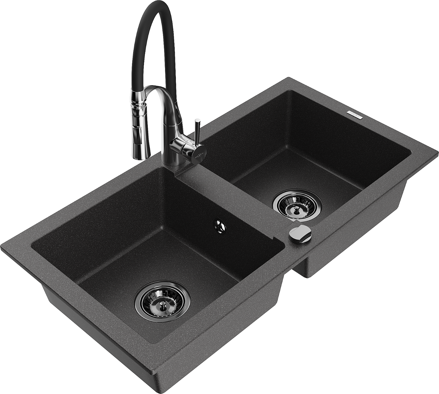 Mexen Mario Grants izlietne ar divām kamerām un virtuves jaucējkrānu Aster, melna ar plankumiem - 6504-76-73450-07-B