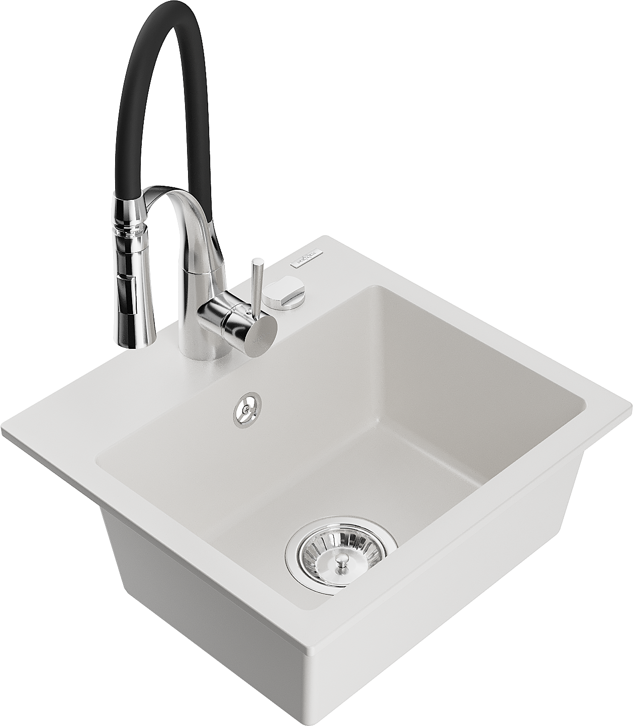 Mexen Milo granitais izlietne ar 1 nodalījumu un virtuves jaucējkrānu Aster, balta - 6505-20-73450-07