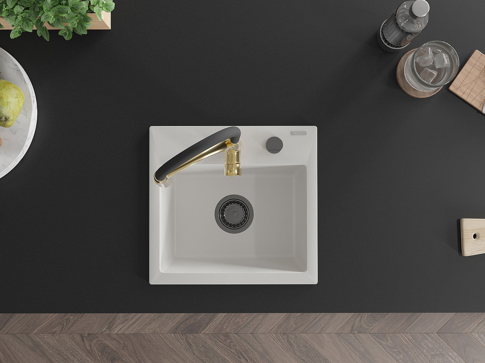Mexen Milo granitizlietne ar 1 nodalījumu un virtuves jaucējkrānu Aster, balta - 6505-20-73450-57-B